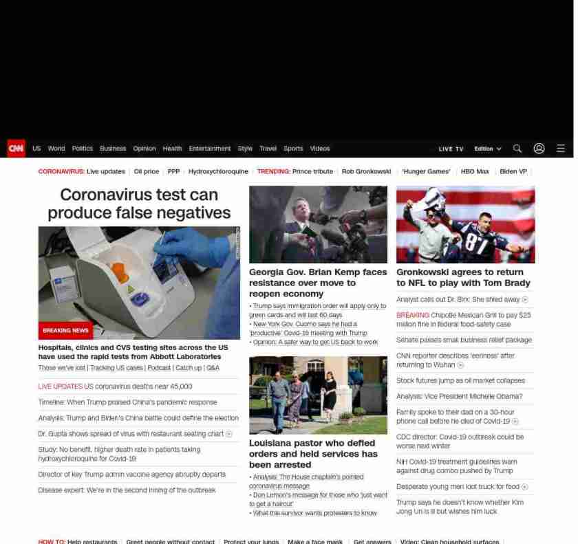 || screaming-banner-text banner-text-size–char-47″ data-analytics=”_list-hierarchical-xs_article_”> Coronavirus test can produce false negatives ||” , title: “CNN – Breaking News, Latest News and Videos” , siblings: {“articleList”:[{“uri”:”/2020/04/21/health/abbott-laboratories-coronavirus-rapid-test/index.html”,”headline”:”u003cstrong>Hospitals, clinics and CVS testing sites across the US have used the rapid tests from Abbott Laboratoriesu003c/strong>”,”thumbnail”:”//cdn.cnn.com/cnnnext/dam/assets/200421184341-abbott-labs-id-now-0410-small-11.jpg”,”duration”:””,”description”:” u003ca href=”https://www.cnn.com/interactive/2020/health/coronavirus-victims-memories/” target=”_blank”>Those we’ve lost u003c/a>| u003ca href=”https://www.cnn.com/interactive/2020/health/coronavirus-us-maps-and-cases/” target=”_blank”>Tracking US casesu003c/a> | u003ca href=”https://www.cnn.com/audio/podcasts/corona-virus” target=”_blank”>Podcastu003c/a> | u003ca href=”https://www.cnn.com/2020/04/20/world/coronavirus-newsletter-04-20-20-intl/index.html” target=”_blank”>Catch upu003c/a> | u003ca href=”http://cnn.com/CoronavirusAnswers” target=”_blank”>Q&Au003c/a>”,”layout”:””