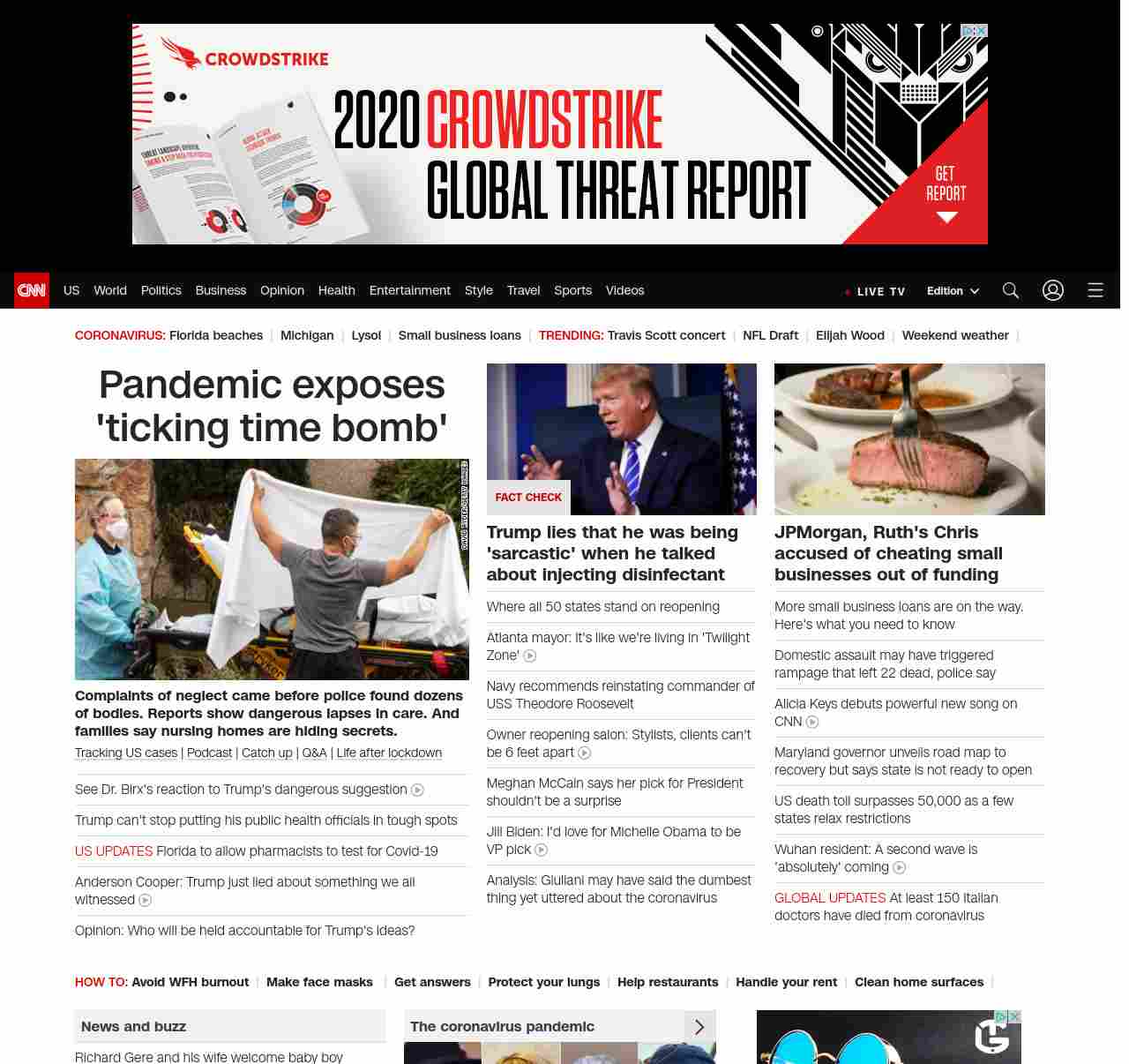 || screaming-banner-text banner-text-size–char-38″ data-analytics=”_list-hierarchical-xs_article_”> Pandemic exposes ‘ticking time bomb’ ||” , title: “CNN – Breaking News, Latest News and Videos” , siblings: {“articleList”:[{“uri”:”/2020/04/24/us/nursing-homes-coronavirus-invs/index.html”,”headline”:”u003cstrong>Complaints of neglect came before police found dozens of bodies. Reports show dangerous lapses in care. And families say nursing homes are hiding secrets.u003c/strong>”,”thumbnail”:”//cdn.cnn.com/cnnnext/dam/assets/200423143649-01-nursing-homes-small-11.jpg”,”duration”:””,”description”:”u003ca href=”https://www.cnn.com/interactive/2020/health/coronavirus-us-maps-and-cases/” target=”_blank”>Tracking US casesu003c/a> | u003ca href=”https://www.cnn.com/audio/podcasts/corona-virus” target=”_blank”>Podcastu003c/a> | u003ca href=”https://www.cnn.com/2020/04/20/world/coronavirus-newsletter-04-20-20-intl/index.html” target=”_blank”>Catch upu003c/a> | u003ca href=”http://cnn.com/CoronavirusAnswers” target=”_blank”>Q&Au003c/a> | u003ca href=”https://www.cnn.com/2020/04/24/world/gallery/coronavirus-after-lockdown/index.html” target=”_blank”>Life after lockdownu003c/a>”,”layout”:””