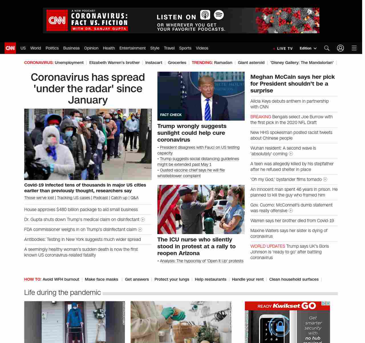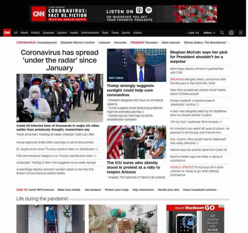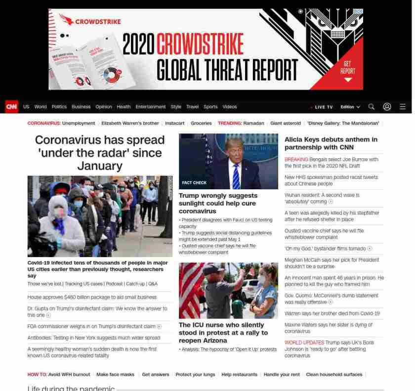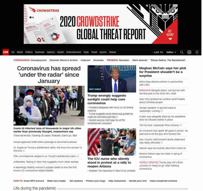 || screaming-banner-text banner-text-size–char-47″ data-analytics=”_list-hierarchical-xs_article_”> Coronavirus has spread ‘under the radar’ since January ||” , title: “CNN – Breaking News, Latest News and Videos” , siblings: {“articleList”:[{“uri”:”/2020/04/23/health/us-coronavirus-thursday/index.html”,”headline”:”u003cstrong>Covid-19 infected tens of thousandsu003c/strong>u003cstrong> in major US cities earlier than previously thought, researchers sayu003c/strong>”,”thumbnail”:”//cdn.cnn.com/cnnnext/dam/assets/200422171532-coronavirus-april-small-11.jpg”,”duration”:””,”description”:” u003ca href=”https://www.cnn.com/interactive/2020/health/coronavirus-victims-memories/” target=”_blank”>Those we’ve lost u003c/a>| u003ca href=”https://www.cnn.com/interactive/2020/health/coronavirus-us-maps-and-cases/” target=”_blank”>Tracking US casesu003c/a> | u003ca href=”https://www.cnn.com/audio/podcasts/corona-virus” target=”_blank”>Podcastu003c/a> | u003ca href=”https://www.cnn.com/2020/04/23/world/coronavirus-newsletter-04-23-20-intl/index.html” target=”_blank”>Catch upu003c/a> | u003ca href=”http://cnn.com/CoronavirusAnswers” target=”_blank”>Q&Au003c/a>”,”layout”:””