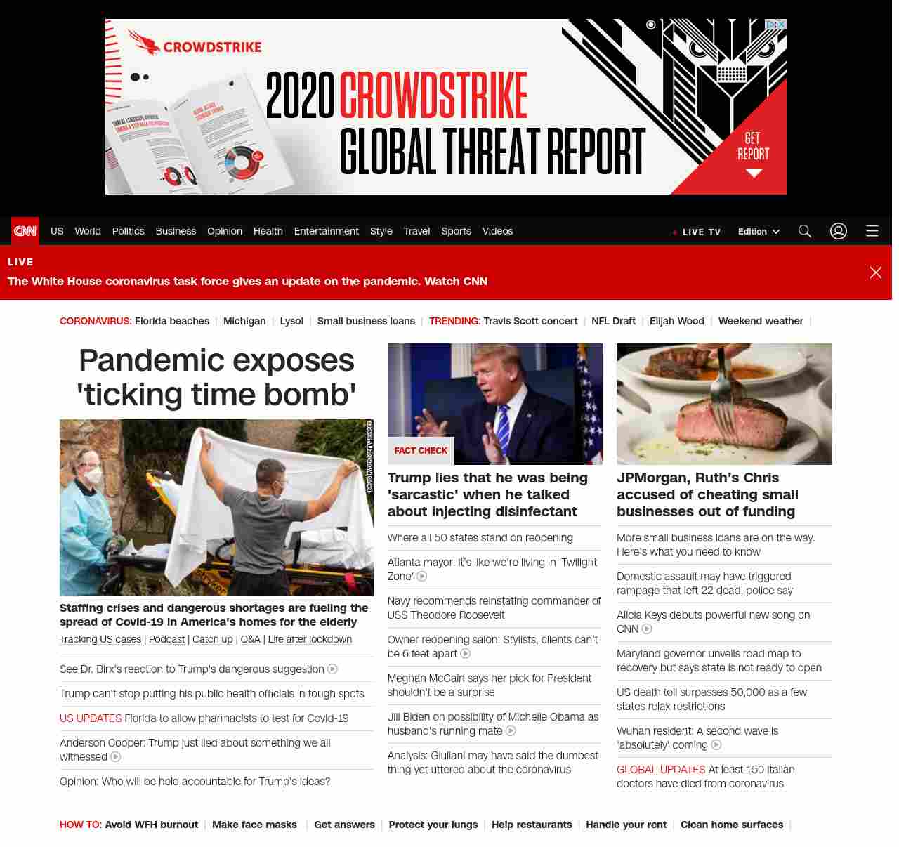 || screaming-banner-text banner-text-size–char-38″ data-analytics=”_list-hierarchical-xs_article_”> Pandemic exposes ‘ticking time bomb’ ||” , title: “CNN – Breaking News, Latest News and Videos” , siblings: {“articleList”:[{“uri”:”/2020/04/24/us/nursing-homes-coronavirus-invs/index.html”,”headline”:”u003cstrong>Staffing crises and dangerous shortages are fueling the spread of Covid-19 in America’s homes for the elderlyu003c/strong>”,”thumbnail”:”//cdn.cnn.com/cnnnext/dam/assets/200423143649-01-nursing-homes-small-11.jpg”,”duration”:””,”description”:”u003ca href=”https://www.cnn.com/interactive/2020/health/coronavirus-us-maps-and-cases/” target=”_blank”>Tracking US casesu003c/a> | u003ca href=”https://www.cnn.com/audio/podcasts/corona-virus” target=”_blank”>Podcastu003c/a> | u003ca href=”https://www.cnn.com/2020/04/20/world/coronavirus-newsletter-04-20-20-intl/index.html” target=”_blank”>Catch upu003c/a> | u003ca href=”http://cnn.com/CoronavirusAnswers” target=”_blank”>Q&Au003c/a> | u003ca href=”https://www.cnn.com/2020/04/24/world/gallery/coronavirus-after-lockdown/index.html” target=”_blank”>Life after lockdownu003c/a>”,”layout”:””