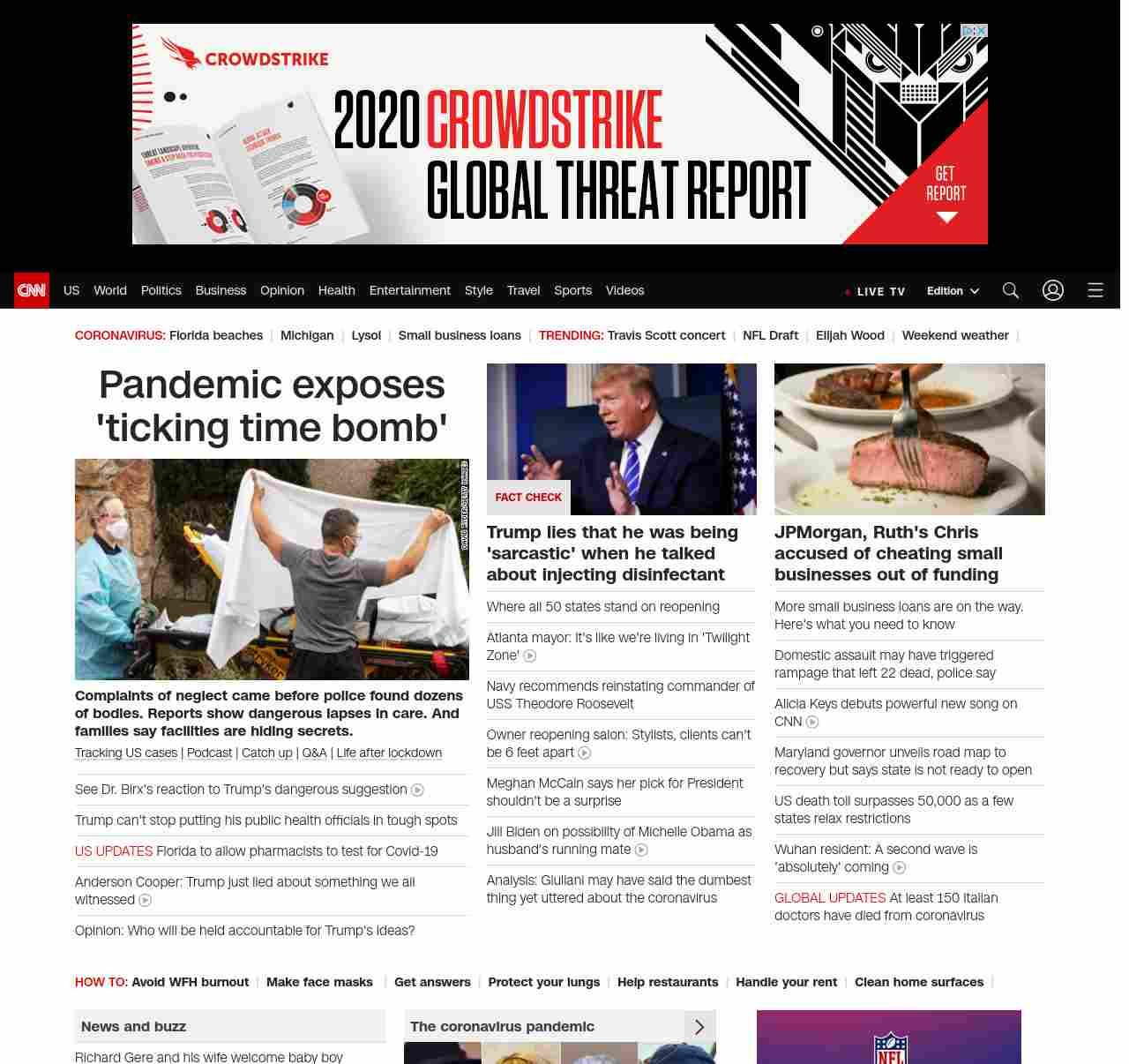 || screaming-banner-text banner-text-size–char-38″ data-analytics=”_list-hierarchical-xs_article_”> Pandemic exposes ‘ticking time bomb’ ||” , title: “CNN – Breaking News, Latest News and Videos” , siblings: {“articleList”:[{“uri”:”/2020/04/24/us/nursing-homes-coronavirus-invs/index.html”,”headline”:”u003cstrong>Complaints of neglect came before police found dozens of bodies. Reports show dangerous lapses in care. And families say facilities are hiding secrets.u003c/strong>”,”thumbnail”:”//cdn.cnn.com/cnnnext/dam/assets/200423143649-01-nursing-homes-small-11.jpg”,”duration”:””,”description”:”u003ca href=”https://www.cnn.com/interactive/2020/health/coronavirus-us-maps-and-cases/” target=”_blank”>Tracking US casesu003c/a> | u003ca href=”https://www.cnn.com/audio/podcasts/corona-virus” target=”_blank”>Podcastu003c/a> | u003ca href=”https://www.cnn.com/2020/04/20/world/coronavirus-newsletter-04-20-20-intl/index.html” target=”_blank”>Catch upu003c/a> | u003ca href=”http://cnn.com/CoronavirusAnswers” target=”_blank”>Q&Au003c/a> | u003ca href=”https://www.cnn.com/2020/04/24/world/gallery/coronavirus-after-lockdown/index.html” target=”_blank”>Life after lockdownu003c/a>”,”layout”:””