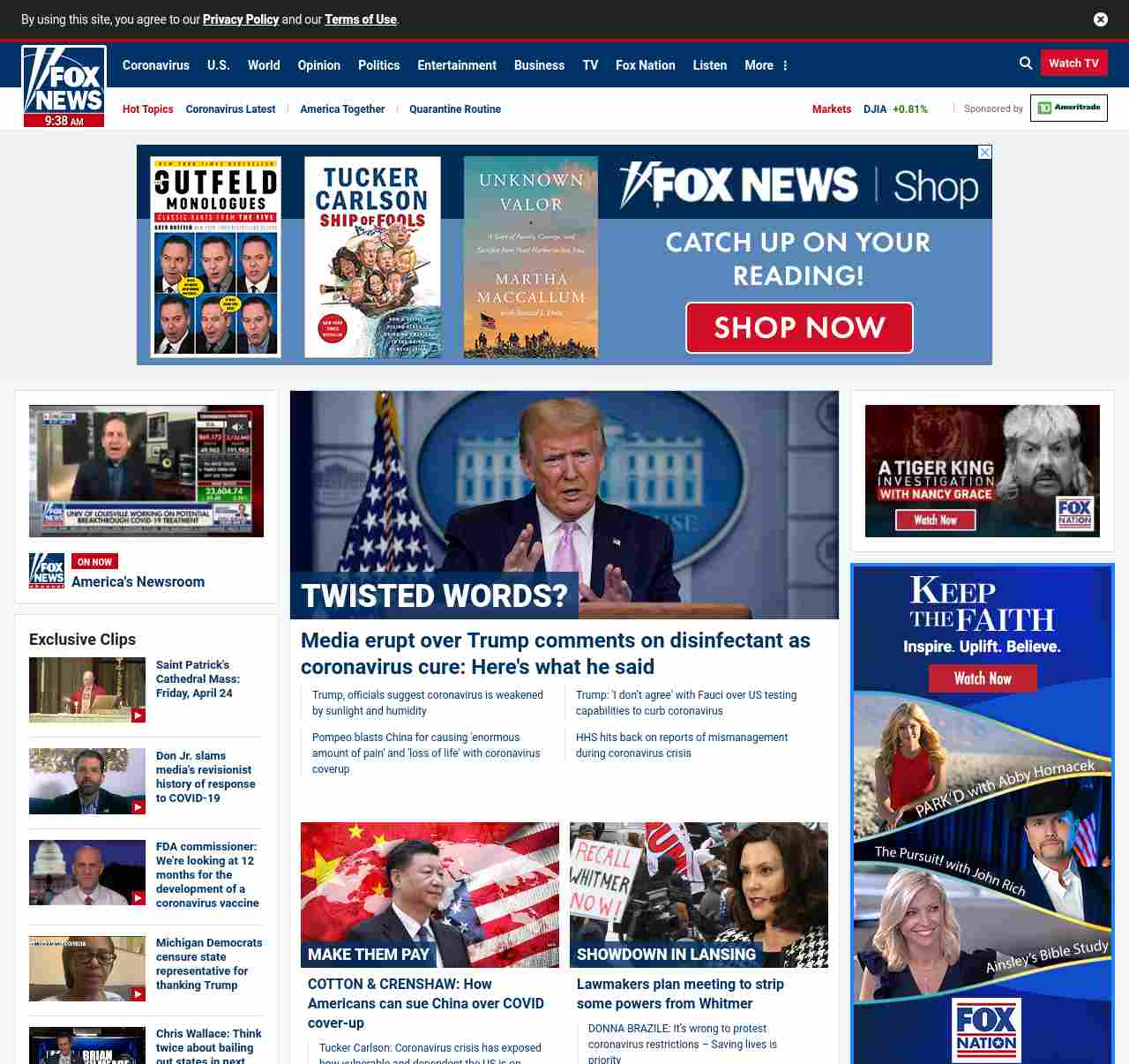 FN: [[TWISTED WORDS?]] Media erupt over Trump comments on disinfectant as coronavirus cure: Here' s what he said ((lubuntu at wor3))
