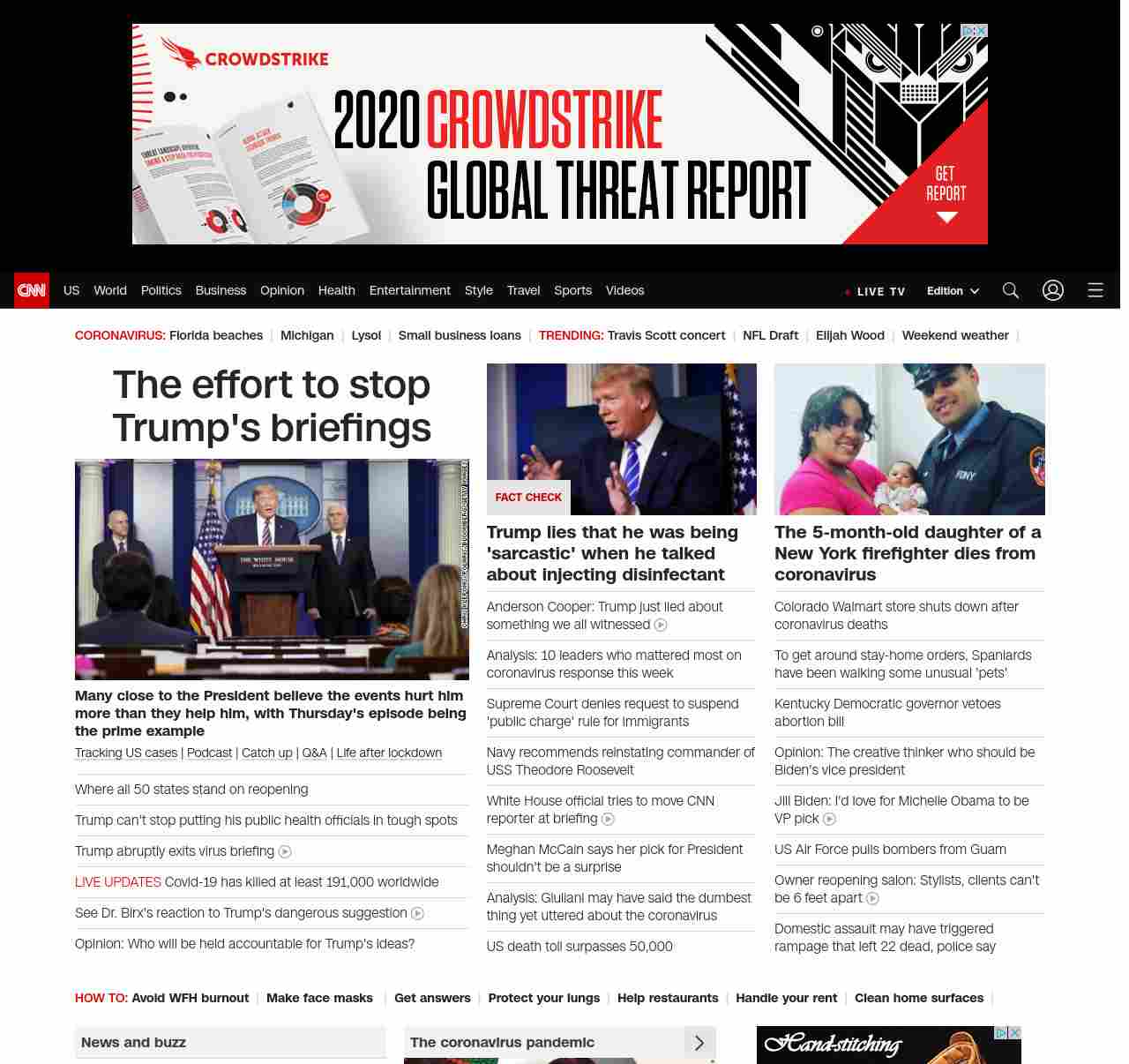 || screaming-banner-text banner-text-size–char-38″ data-analytics=”_list-hierarchical-xs_article_”> The effort to stop Trump’s briefings ||” , title: “CNN – Breaking News, Latest News and Videos” , siblings: {“articleList”:[{“uri”:”/2020/04/24/politics/white-house-briefings-coronavirus/index.html”,”headline”:”u003cstrong>Many close to the President believe the events hurt him more than they help him, with Thursday’s episode being the prime exampleu003c/strong>”,”thumbnail”:”//cdn.cnn.com/cnnnext/dam/assets/200421192313-donald-trump-immigration-order-coronavirus-green-cards-briefing-acosta-bts-tsr-vpx-00000310-small-11.jpg”,”duration”:””,”description”:”u003ca href=”https://www.cnn.com/interactive/2020/health/coronavirus-us-maps-and-cases/” target=”_blank”>Tracking US casesu003c/a> | u003ca href=”https://www.cnn.com/audio/podcasts/corona-virus” target=”_blank”>Podcastu003c/a> | u003ca href=”https://www.cnn.com/2020/04/20/world/coronavirus-newsletter-04-20-20-intl/index.html” target=”_blank”>Catch upu003c/a> | u003ca href=”http://cnn.com/CoronavirusAnswers” target=”_blank”>Q&Au003c/a> | u003ca href=”https://www.cnn.com/2020/04/24/world/gallery/coronavirus-after-lockdown/index.html” target=”_blank”>Life after lockdownu003c/a>”,”layout”:””