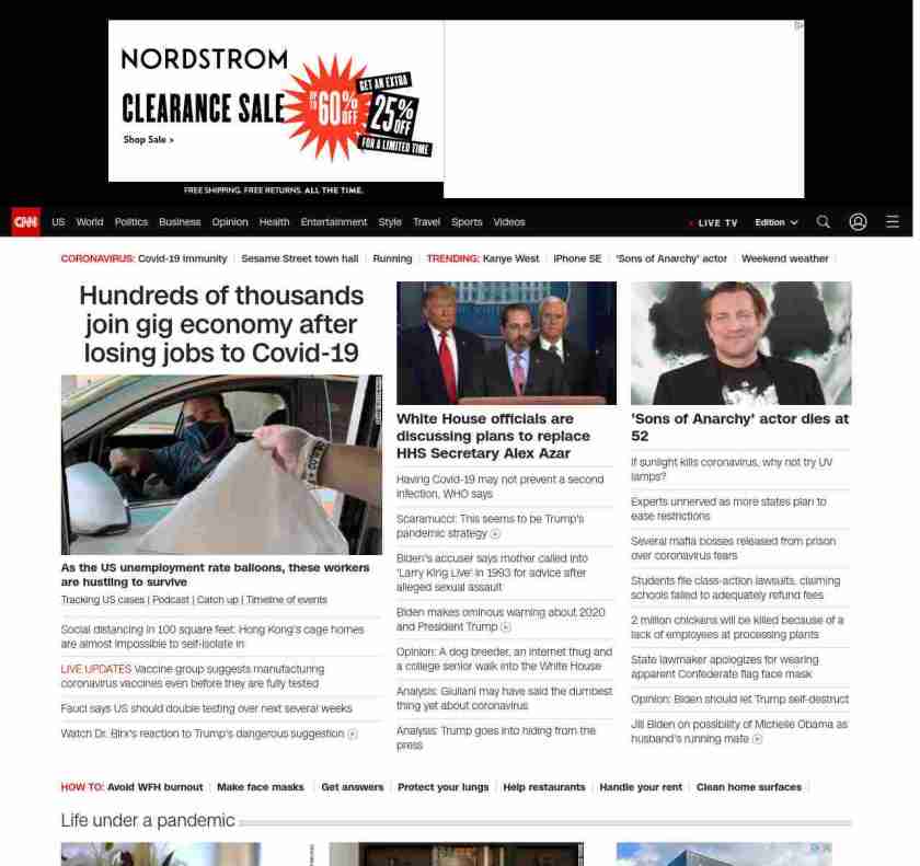 || screaming-banner-text banner-text-size–char-47″ data-analytics=”_list-hierarchical-xs_article_”> Hundreds of thousands join gig economy after losing jobs to Covid-19 ||” , title: “CNN – Breaking News, Latest News and Videos” , siblings: {“articleList”:[{“uri”:”/2020/04/26/us/gig-workers-informal-jobs-coronavirus/index.html”,”headline”:”u003cstrong>As the US unemployment rate balloons, these workers are hustling to surviveu003c/strong>”,”thumbnail”:”//cdn.cnn.com/cnnnext/dam/assets/200423230851-01-gig-economy-small-11.jpg”,”duration”:””,”description”:”u003ca href=”https://www.cnn.com/interactive/2020/health/coronavirus-us-maps-and-cases/” target=”_blank”>Tracking US casesu003c/a> | u003ca href=”https://www.cnn.com/audio/podcasts/corona-virus” target=”_blank”>Podcastu003c/a> |u003ca href=”https://www.cnn.com/2020/04/25/world/coronavirus-newsletter-04-25-20-intl/index.html” target=”_blank”> Catch upu003c/a> | u003ca href=”https://www.cnn.com/interactive/2020/health/covid19-pandemic-video-timeline/index.html” target=”_blank”>Timeline of eventsu003c/a>”,”layout”:””