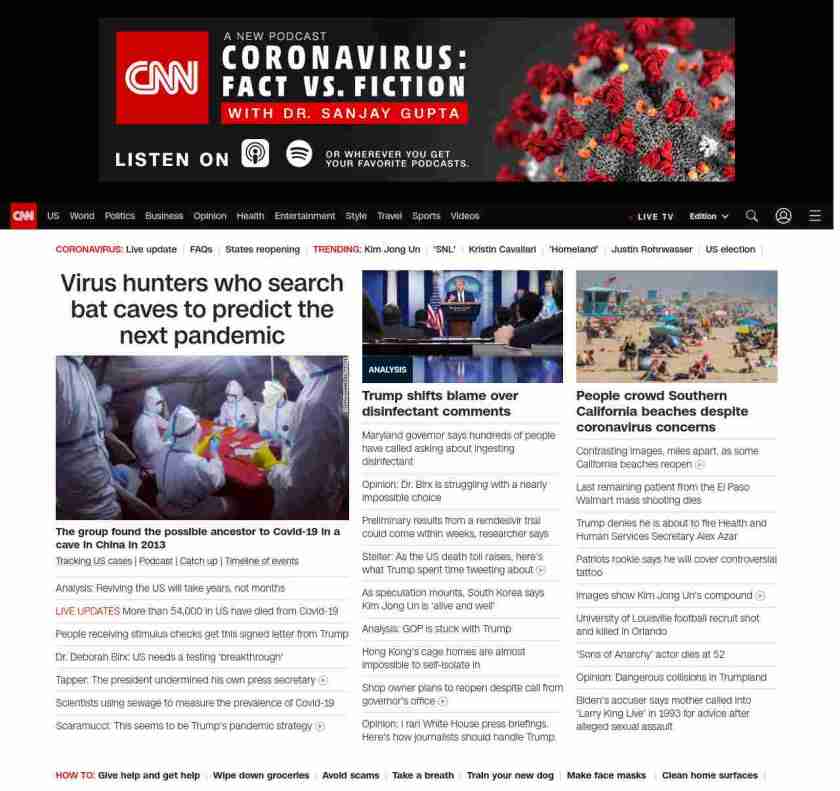 || screaming-banner-text banner-text-size–char-47″ data-analytics=”_list-hierarchical-xs_article_”> Reviving America after Covid-19 will take years, not months ||” , title: “CNN – Breaking News, Latest News and Videos” , siblings: {“articleList”:[{“uri”:”/2020/04/26/health/virus-hunters-bat-cave-coronavirus-hnk-intl/index.html”,”headline”:”u003cstrong>The group found the possible ancestor to Covid-19 in a cave in China in 2013u003c/strong>”,”thumbnail”:”//cdn.cnn.com/cnnnext/dam/assets/200424154633-virus-hunter–virus-1-small-11.jpg”,”duration”:””,”description”:”u003ca href=”https://www.cnn.com/interactive/2020/health/coronavirus-us-maps-and-cases/” target=”_blank”>Tracking US casesu003c/a> | u003ca href=”https://www.cnn.com/audio/podcasts/corona-virus” target=”_blank”>Podcastu003c/a> |u003ca href=”https://www.cnn.com/2020/04/26/world/coronavirus-newsletter-04-26-20-intl/index.html” target=”_blank”> Catch upu003c/a> | u003ca href=”https://www.cnn.com/interactive/2020/health/covid19-pandemic-video-timeline/index.html” target=”_blank”>Timeline of eventsu003c/a> “,”layout”:””