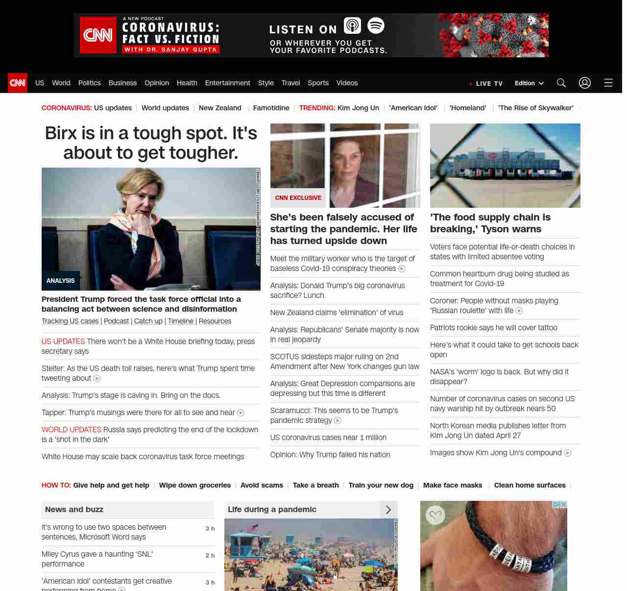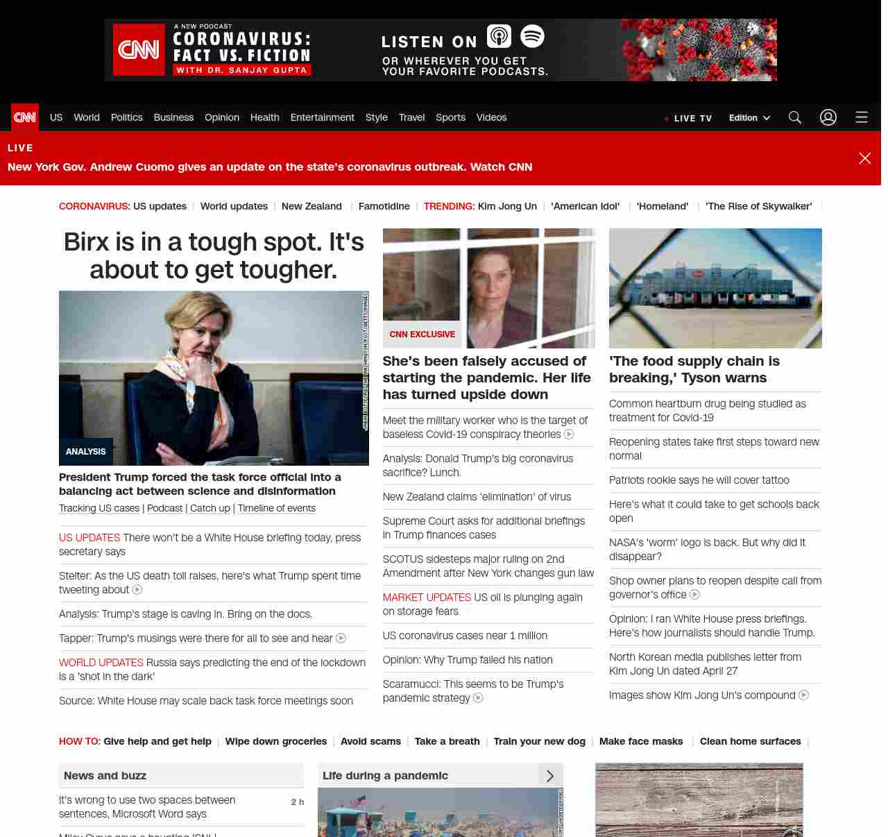 || screaming-banner-text banner-text-size–char-47″ data-analytics=”_list-hierarchical-xs_article_”> Birx is in a tough spot. It’s about to get tougher. ||” , title: “CNN – Breaking News, Latest News and Videos” , siblings: {“articleList”:[{“uri”:”/2020/04/27/politics/donald-trump-deborah-birx-disinfectant-testing-coronavirus/index.html”,”headline”:”u003cstrong>President Trump forced the task force official into a balancing act between science and disinformationu003c/strong>”,”thumbnail”:”//cdn.cnn.com/cnnnext/dam/assets/200427112832-dr-birx-0423-small-11.jpg”,”duration”:””,”description”:”u003ca href=”https://www.cnn.com/interactive/2020/health/coronavirus-us-maps-and-cases/” target=”_blank”>Tracking US casesu003c/a> | u003ca href=”https://www.cnn.com/audio/podcasts/corona-virus” target=”_blank”>Podcastu003c/a> |u003ca href=”http://www.cnn.com/2020/04/27/world/coronavirus-newsletter-04-27-20-intl/index.html” target=”_blank”> Catch upu003c/a> | u003ca href=”https://www.cnn.com/interactive/2020/health/covid19-pandemic-video-timeline/index.html” target=”_blank”>Timeline of eventsu003c/a> “,”layout”:””