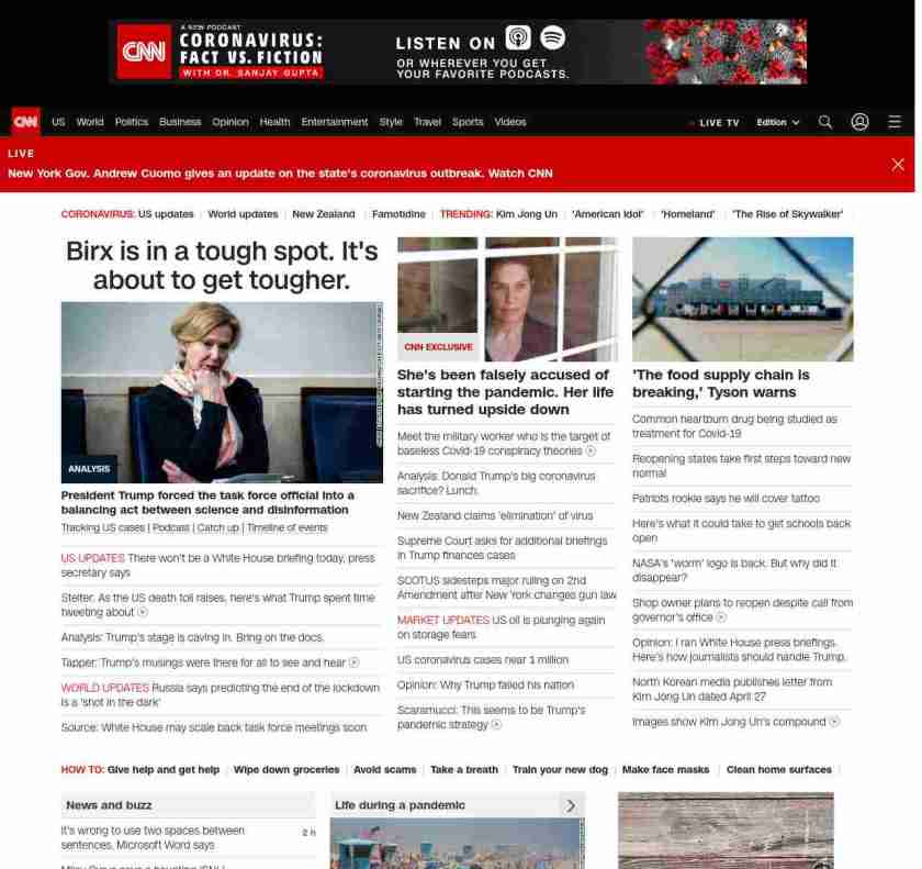 || screaming-banner-text banner-text-size–char-47″ data-analytics=”_list-hierarchical-xs_article_”> Birx is in a tough spot. It’s about to get tougher. ||” , title: “CNN – Breaking News, Latest News and Videos” , siblings: {“articleList”:[{“uri”:”/2020/04/27/politics/donald-trump-deborah-birx-disinfectant-testing-coronavirus/index.html”,”headline”:”u003cstrong>President Trump forced the task force official into a balancing act between science and disinformationu003c/strong>”,”thumbnail”:”//cdn.cnn.com/cnnnext/dam/assets/200424093623-dr-birx-trump-briefing-0423-small-11.jpg”,”duration”:””,”description”:”u003ca href=”https://www.cnn.com/interactive/2020/health/coronavirus-us-maps-and-cases/” target=”_blank”>Tracking US casesu003c/a> | u003ca href=”https://www.cnn.com/audio/podcasts/corona-virus” target=”_blank”>Podcastu003c/a> |u003ca href=”http://www.cnn.com/2020/04/27/world/coronavirus-newsletter-04-27-20-intl/index.html” target=”_blank”> Catch upu003c/a> | u003ca href=”https://www.cnn.com/interactive/2020/health/covid19-pandemic-video-timeline/index.html” target=”_blank”>Timeline of eventsu003c/a> “,”layout”:””