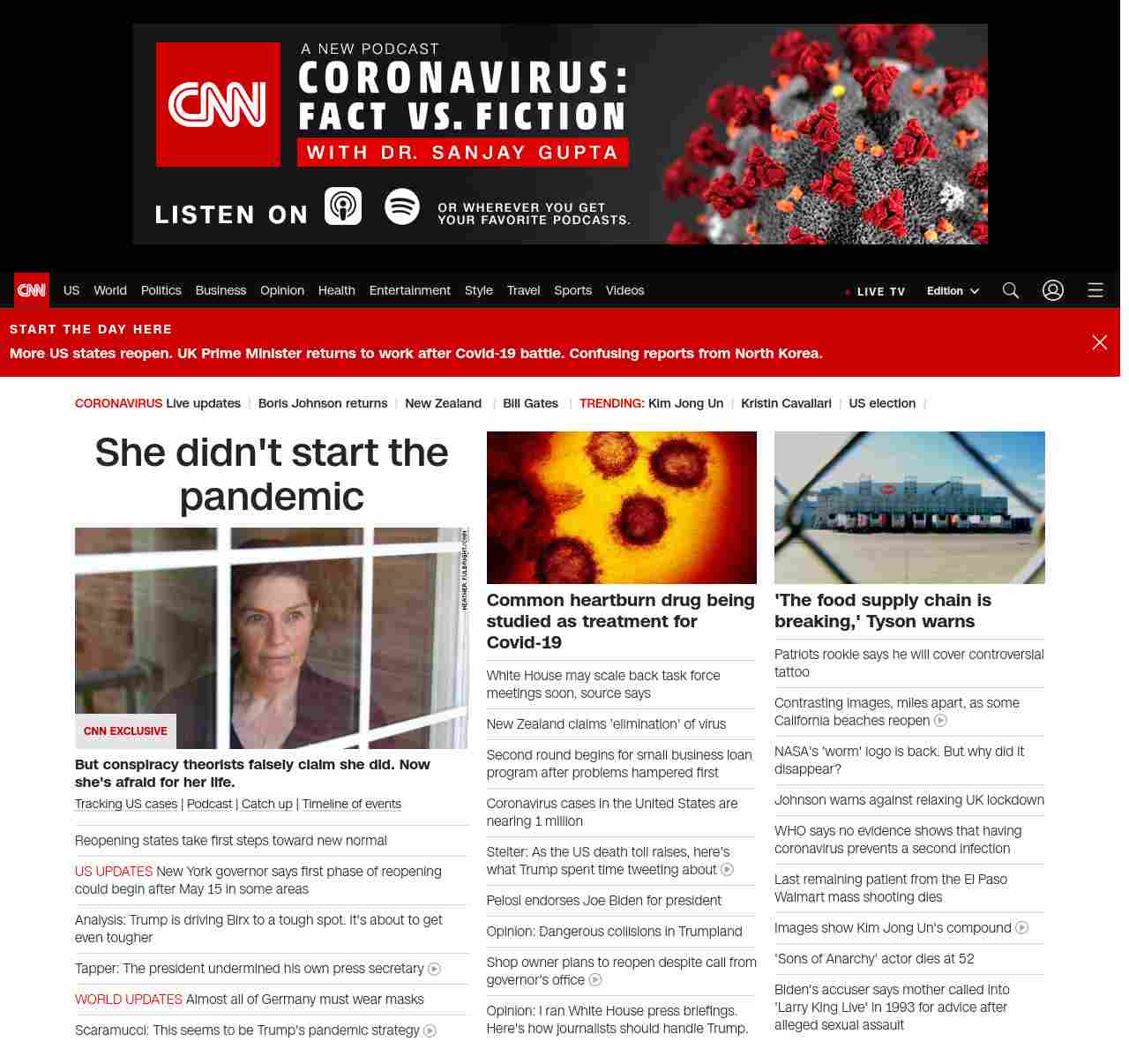 || screaming-banner-text banner-text-size–char-32″ data-analytics=”_list-hierarchical-xs_article_”> She didn’t start the pandemic ||” , title: “CNN – Breaking News, Latest News and Videos” , siblings: {“articleList”:[{“uri”:”/2020/04/27/tech/coronavirus-conspiracy-theory/index.html”,”headline”:”u003cstrong>But conspiracy theorists falsely claim she did. Now she’s afraid for her life.u003c/strong>”,”thumbnail”:”//cdn.cnn.com/cnnnext/dam/assets/200424154536-01-maatje-benassi-0422-small-11.jpg”,”duration”:””,”description”:”u003ca href=”https://www.cnn.com/interactive/2020/health/coronavirus-us-maps-and-cases/” target=”_blank”>Tracking US casesu003c/a> | u003ca href=”https://www.cnn.com/audio/podcasts/corona-virus” target=”_blank”>Podcastu003c/a> |u003ca href=”http://www.cnn.com/2020/04/27/world/coronavirus-newsletter-04-27-20-intl/index.html” target=”_blank”> Catch upu003c/a> | u003ca href=”https://www.cnn.com/interactive/2020/health/covid19-pandemic-video-timeline/index.html” target=”_blank”>Timeline of eventsu003c/a> “,”layout”:””