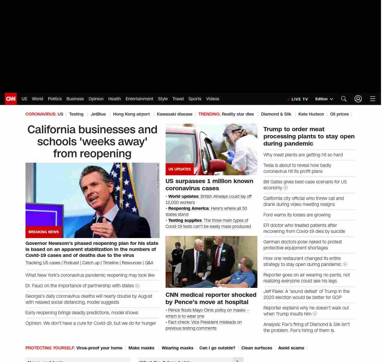 || screaming-banner-text banner-text-size–char-47″ data-analytics=”_list-hierarchical-xs_article_”> California businesses and schools ‘weeks away’ from reopening ||” , title: “CNN – Breaking News, Latest News and Videos” , siblings: {“articleList”:[{“uri”:”/2020/04/28/politics/california-phased-reopening-plan/index.html”,”headline”:”u003cstrong>Governor Newsom’s phased reopening plan for his state is based on an apparent stabilization in the numbers of Covid-19 cases and of deaths due to the virusu003c/strong>”,”thumbnail”:”//cdn.cnn.com/cnnnext/dam/assets/200416085929-gavin-newsom-0414-small-11.jpg”,”duration”:””,”description”:”u003ca href=”https://www.cnn.com/interactive/2020/health/coronavirus-us-maps-and-cases/” target=”_blank”>Tracking US casesu003c/a> | u003ca href=”https://www.cnn.com/audio/podcasts/corona-virus” target=”_blank”>Podcastu003c/a> |u003ca href=”https://www.cnn.com/2020/04/28/world/coronavirus-newsletter-04-28-20-intl/index.html” target=”_blank”> Catch upu003c/a> | u003ca href=”https://www.cnn.com/interactive/2020/health/covid19-pandemic-video-timeline/index.html” target=”_blank”>Timelineu003c/a> | u003ca href=”https://www.cnn.com/resources/coronavirus-information” target=”_blank”>Resourcesu003c/a>”,”layout”:””