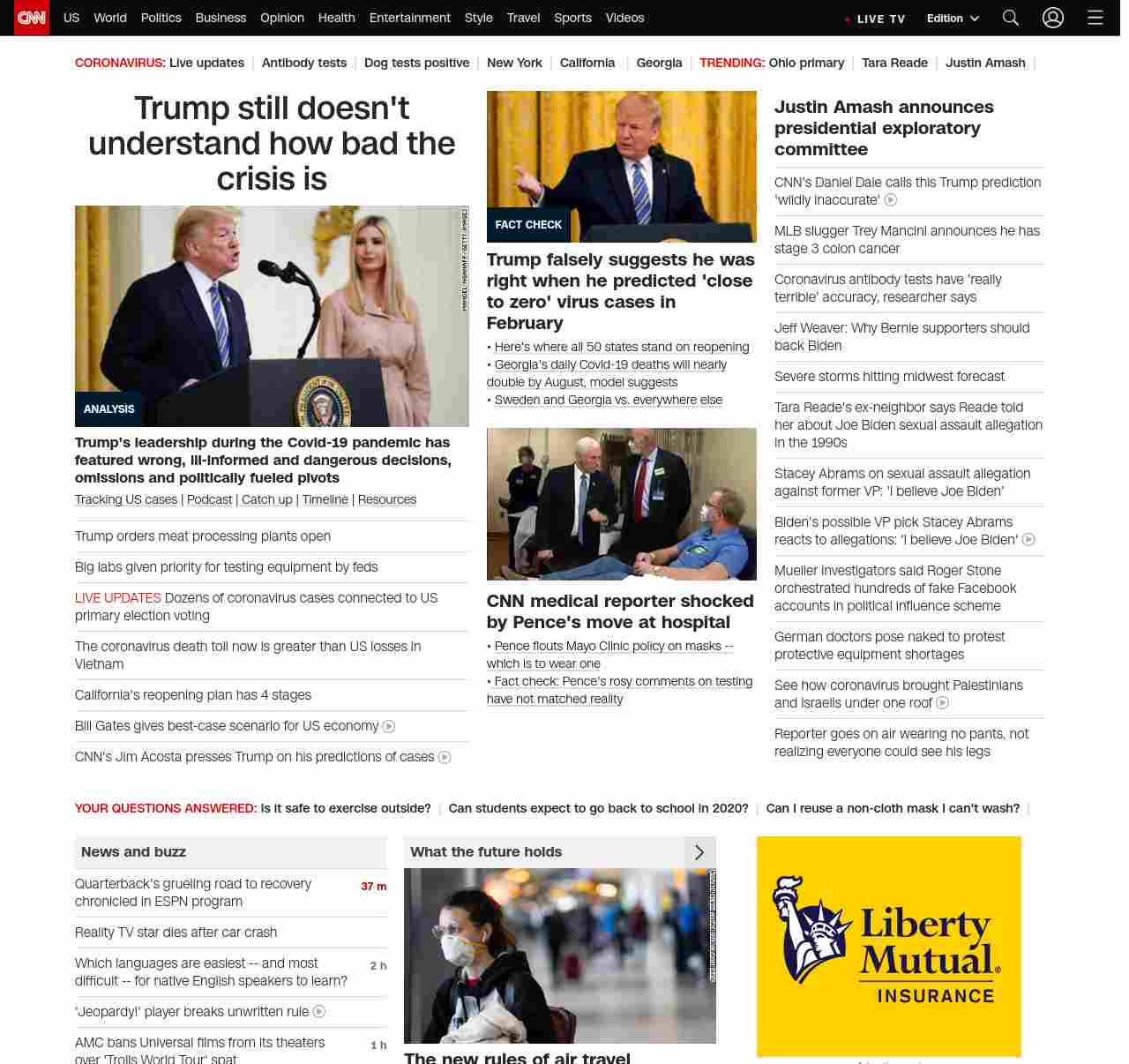 || screaming-banner-text banner-text-size–char-47″ data-analytics=”_list-hierarchical-xs_article_”> Trump still doesn’t understand how bad the crisis is ||” , title: “CNN – Breaking News, Latest News and Videos” , siblings: {“articleList”:[{“uri”:”/2020/04/29/politics/donald-trump-coronavirus-politics-pence/index.html”,”headline”:”Analysis: Trump still doesn’t understand how bad the crisis is”,”thumbnail”:”//cdn.cnn.com/cnnnext/dam/assets/200428153848-03-trump-paycheck-protection-0428-small-11.jpg”,”duration”:””,”description”:”u003ca href=”https://www.cnn.com/interactive/2020/health/coronavirus-us-maps-and-cases/” target=”_blank”>Tracking US casesu003c/a> | u003ca href=”https://www.cnn.com/audio/podcasts/corona-virus” target=”_blank”>Podcastu003c/a> |u003ca href=”https://www.cnn.com/2020/04/28/world/coronavirus-newsletter-04-28-20-intl/index.html” target=”_blank”> Catch upu003c/a> | u003ca href=”https://www.cnn.com/interactive/2020/health/covid19-pandemic-video-timeline/index.html” target=”_blank”>Timelineu003c/a> | u003ca href=”https://www.cnn.com/resources/coronavirus-information” target=”_blank”>Resourcesu003c/a>”,”layout”:””