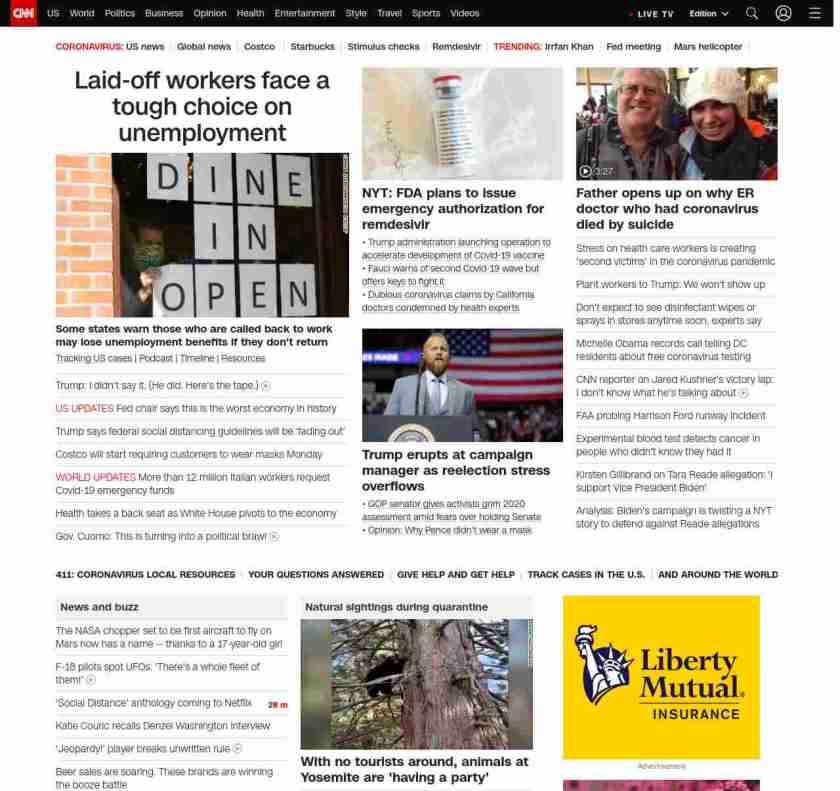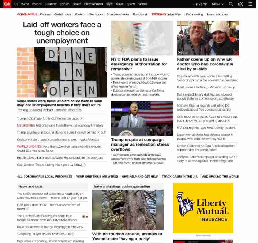 || screaming-banner-text banner-text-size–char-47″ data-analytics=”_list-hierarchical-xs_hyperlink_”> NYT: FDA plans to issue emergency authorization for remdesivir ||” , title: “CNN – Breaking News, Latest News and Videos” , siblings: {“articleList”:[{“uri”:”/2020/04/29/politics/states-reopening-unemployment-benefits/index.html”,”headline”:”u003cstrong>Some states warn those who are called back to work may lose unemployment benefits if they don’t returnu003c/strong>”,”thumbnail”:”//cdn.cnn.com/cnnnext/dam/assets/200429105818-02-georgia-reopening-0427-small-11.jpg”,”duration”:””,”description”:”u003ca href=”https://www.cnn.com/interactive/2020/health/coronavirus-us-maps-and-cases/” target=”_blank”>Tracking US casesu003c/a> | u003ca href=”https://www.cnn.com/audio/podcasts/corona-virus” target=”_blank”>Podcastu003c/a> | u003ca href=”https://www.cnn.com/interactive/2020/health/covid19-pandemic-video-timeline/index.html” target=”_blank”>Timelineu003c/a> | u003ca href=”https://www.cnn.com/resources/coronavirus-information” target=”_blank”>Resourcesu003c/a>”,”layout”:””