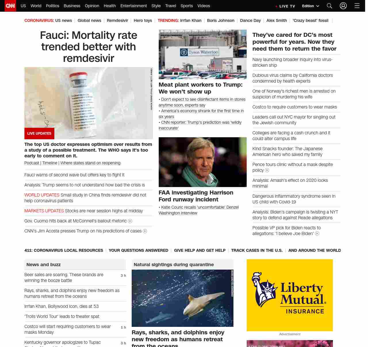 || screaming-banner-text banner-text-size–char-47″ data-analytics=”_list-hierarchical-xs_article_”> Fauci: Mortality rate trended ‘better’ with remdesivir ||” , title: “CNN – Breaking News, Latest News and Videos” , siblings: {“articleList”:[{“uri”:”/us/live-news/us-coronavirus-update-04-29-20/index.html”,”headline”:”u003cstrong>The top US doctor expresses optimism over results from a study of a possible treatment. The WHO says it’s too early to comment on it.u003c/strong>”,”thumbnail”:”//cdn.cnn.com/cnnnext/dam/assets/200417112031-gilead-remdesivir-0408-small-11.jpg”,”duration”:””,”description”:”u003ca href=”https://www.cnn.com/audio/podcasts/corona-virus” target=”_blank”>Podcastu003c/a>u003ca href=”https://www.cnn.com/2020/04/29/world/coronavirus-newsletter-04-29-20-intl/index.html” target=”_blank”> u003c/a>| u003ca href=”https://www.cnn.com/interactive/2020/health/covid19-pandemic-video-timeline/index.html” target=”_blank”>Timelineu003c/a> | u003ca href=”https://www.cnn.com/interactive/2020/us/states-reopen-coronavirus-trnd/” target=”_blank”>Where states stand on reopeningu003c/a>”,”layout”:””