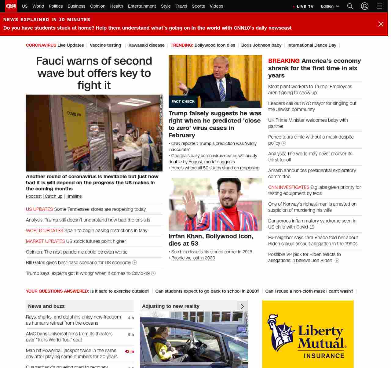 || screaming-banner-text banner-text-size–char-47″ data-analytics=”_list-hierarchical-xs_article_”> Fauci warns of second wave but offers key to fight it ||” , title: “CNN – Breaking News, Latest News and Videos” , siblings: {“articleList”:[{“uri”:”/2020/04/29/health/us-coronavirus-wednesday/index.html”,”headline”:”u003cstrong>Another round of coronavirus is inevitable but just how bad it is will depend on the progress the US makes in the coming monthsu003c/strong>”,”thumbnail”:”//cdn.cnn.com/cnnnext/dam/assets/200429084538-03-fauci-second-wave-coronavirus-small-11.jpg”,”duration”:””,”description”:”u003ca href=”https://www.cnn.com/audio/podcasts/corona-virus” target=”_blank”>Podcastu003c/a> |u003ca href=”https://www.cnn.com/2020/04/28/world/coronavirus-newsletter-04-28-20-intl/index.html” target=”_blank”> Catch upu003c/a> | u003ca href=”https://www.cnn.com/interactive/2020/health/covid19-pandemic-video-timeline/index.html” target=”_blank”>Timelineu003c/a>”,”layout”:””