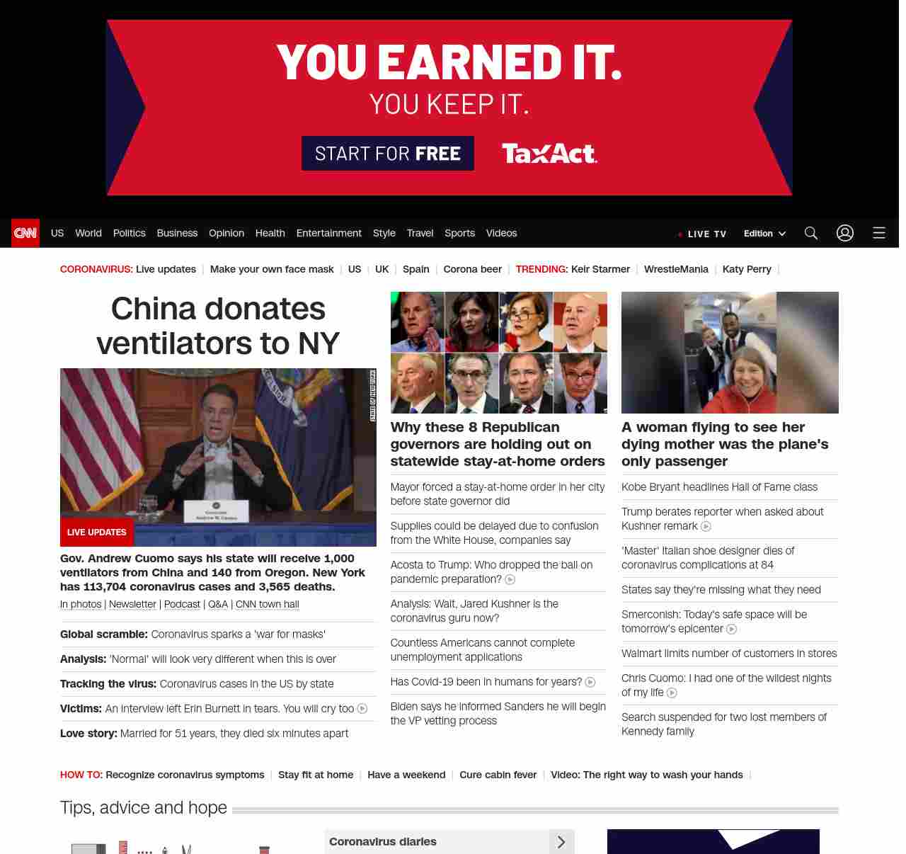 || screaming-banner-text banner-text-size–char-32″ data-analytics=”_list-hierarchical-xs_hyperlink_”> China donates ventilators to NY ||” , title: “CNN – Breaking News, Latest News and Videos” , siblings: {“articleList”:[{“uri”:”/2020/04/04/europe/coronavirus-masks-war-intl/index.html”,”headline”:”u003cstrong>Global scramble: u003c/strong>Coronavirus sparks a ‘war for masks'”,”thumbnail”:”//cdn.cnn.com/cnnnext/dam/assets/200128110054-n95-respirators-file-small-11.jpg”,”duration”:””,”description”:”As the u003ca href=”https://cnn.com/world/live-news/coronavirus-pandemic-04-04-20/index.html” target=”_blank”>coronavirus pandemicu003c/a> spreads across Europe and the United States, a global scramble for medical equipment such as respirator masks and gloves is underway. Several countries have accused the United States of trying to hijack their orders, but the details of who may have done what to whom are still murky.”,”layout”:””