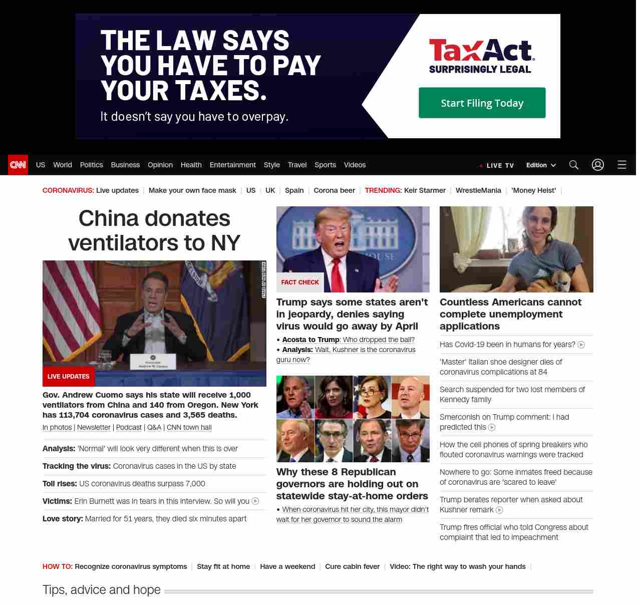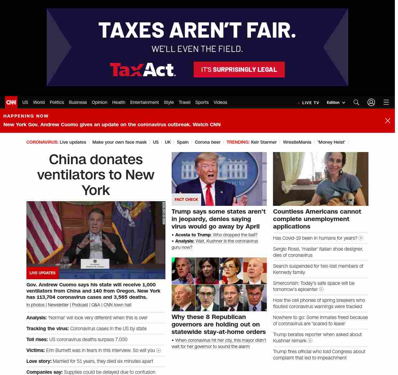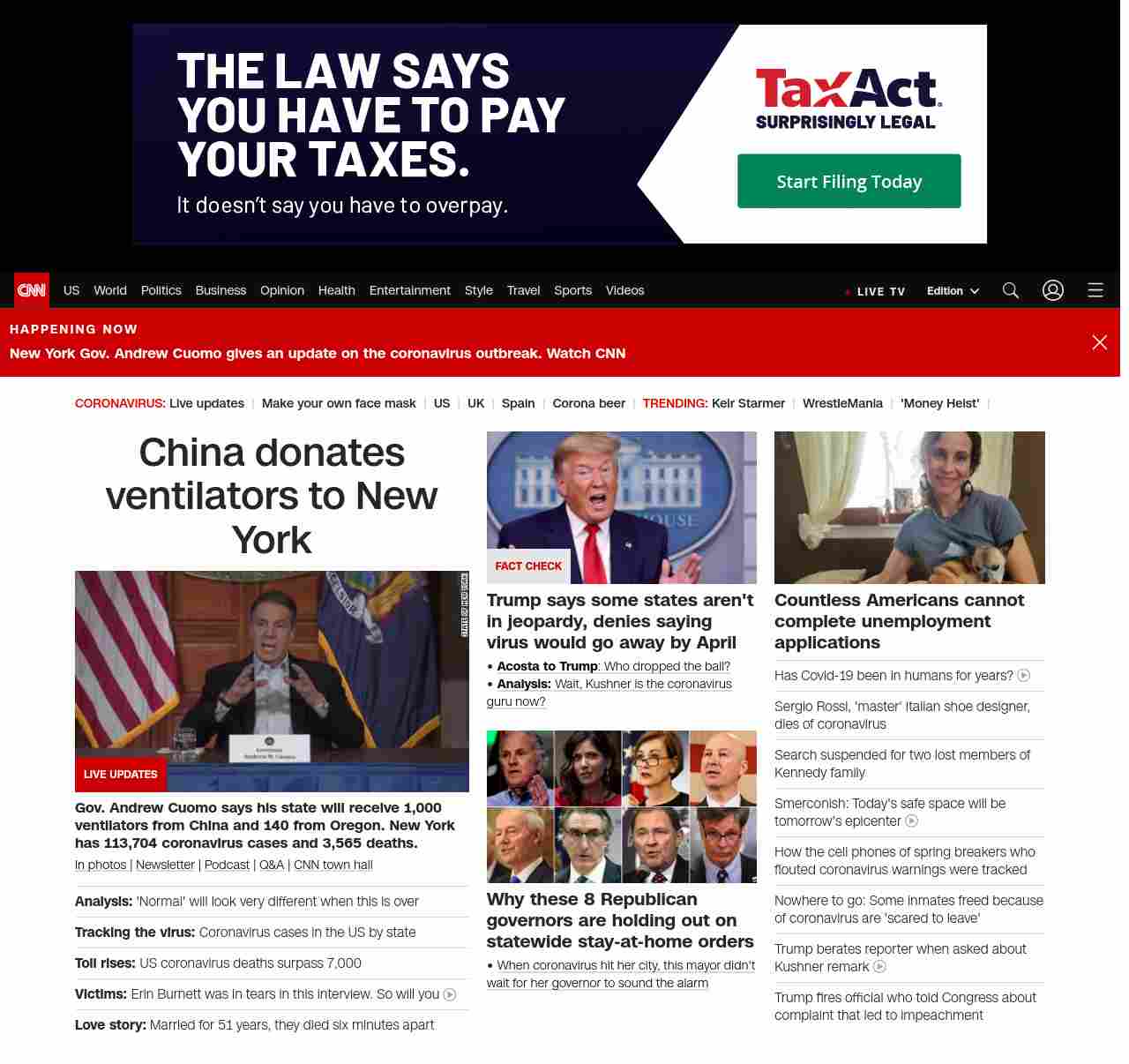 || screaming-banner-text banner-text-size–char-38″ data-analytics=”_list-hierarchical-xs_hyperlink_”> China donates ventilators to New York ||” , title: “CNN – Breaking News, Latest News and Videos” , siblings: {“articleList”:[{“uri”:”/2020/04/04/politics/what-matters-april-3/index.html”,”headline”:”u003cstrong>Analysis:u003c/strong> ‘Normal’ will look very different when this is over”,”thumbnail”:”//cdn.cnn.com/cnnnext/dam/assets/200403180010-02-coronavirus-testing-new-york-small-11.jpg”,”duration”:””,”description”:””,”layout”:””