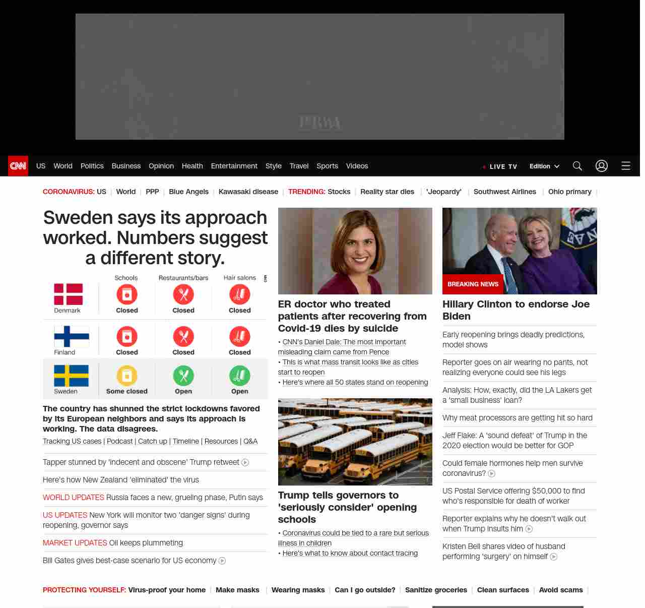 || screaming-banner-text banner-text-size–char-47″ data-analytics=”_list-hierarchical-xs_article_”> Trump tells governors to ‘seriously consider’ opening schools ||” , title: “CNN – Breaking News, Latest News and Videos” , siblings: {“articleList”:[{“uri”:”/2020/04/28/europe/sweden-coronavirus-lockdown-strategy-intl/index.html”,”headline”:”u003cstrong>The country hasn’t imposed strict limits. Its death rate has risen significantly higher than its neighbors.u003c/strong>”,”thumbnail”:”//cdn.cnn.com/cnnnext/dam/assets/200428164841-sweden-corona-response-card4-small-11.png”,”duration”:””,”description”:”u003ca href=”https://www.cnn.com/interactive/2020/health/coronavirus-us-maps-and-cases/” target=”_blank”>Tracking US casesu003c/a> | u003ca href=”https://www.cnn.com/audio/podcasts/corona-virus” target=”_blank”>Podcastu003c/a> |u003ca href=”https://www.cnn.com/2020/04/28/world/coronavirus-newsletter-04-28-20-intl/index.html” target=”_blank”> Catch upu003c/a> | u003ca href=”https://www.cnn.com/interactive/2020/health/covid19-pandemic-video-timeline/index.html” target=”_blank”>Timelineu003c/a> | u003ca href=”https://www.cnn.com/resources/coronavirus-information” target=”_blank”>Resourcesu003c/a> | u003ca href=”http://cnn.com/coronavirusanswers” target=”_blank”>Q&Au003c/a>”,”layout”:””