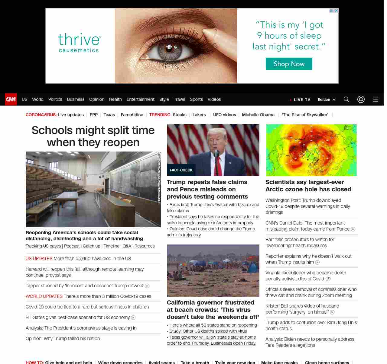 || screaming-banner-text banner-text-size–char-44″ data-analytics=”_list-hierarchical-xs_article_”> Schools might split time when they reopen ||” , title: “CNN – Breaking News, Latest News and Videos” , siblings: {“articleList”:[{“uri”:”/2020/04/27/us/coronavirus-schools-reopening-plans/index.html”,”headline”:”u003cstrong>Reopening America’s schools could take social distancing, disinfecting and a lot of handwashingu003c/strong>”,”thumbnail”:”//cdn.cnn.com/cnnnext/dam/assets/200427213325-empty-classroom-united-states-small-11.jpg”,”duration”:””,”description”:”u003ca href=”https://www.cnn.com/interactive/2020/health/coronavirus-us-maps-and-cases/” target=”_blank”>Tracking US casesu003c/a> | u003ca href=”https://www.cnn.com/audio/podcasts/corona-virus” target=”_blank”>Podcastu003c/a> |u003ca href=”https://www.cnn.com/2020/04/26/world/coronavirus-newsletter-04-26-20-intl/index.html” target=”_blank”> Catch upu003c/a> | u003ca href=”https://www.cnn.com/interactive/2020/health/covid19-pandemic-video-timeline/index.html” target=”_blank”>Timelineu003c/a> | u003ca href=”http://cnn.com/coronavirusanswers” target=”_blank”>Q&Au003c/a> | u003ca href=”https://www.cnn.com/resources/coronavirus-information” target=”_blank”>Resourcesu003c/a>”,”layout”:””
