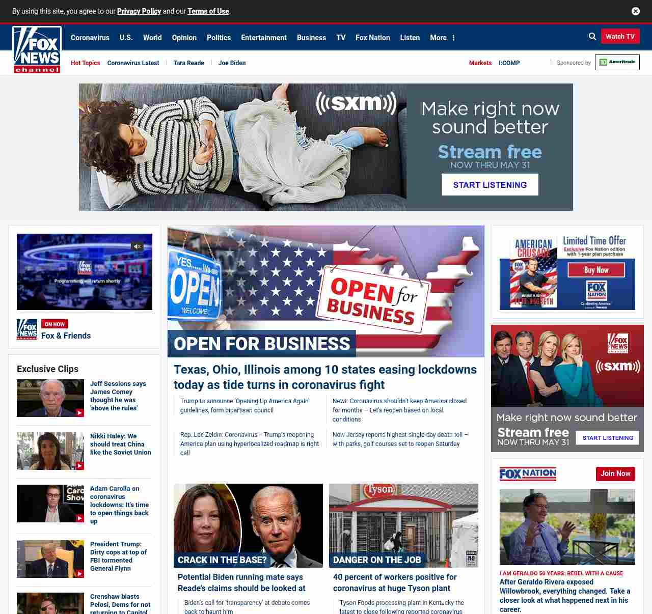FN: [[OPEN FOR BUSINESS]] Texas, Ohio, Illinois among 10 states easing lockdowns today as tide turns in coronavirus fight ((lubuntu at wor3))