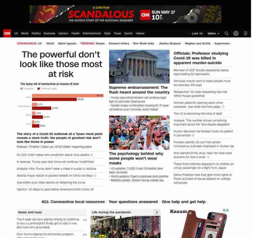 || screaming-banner-text banner-text-size–char-32″ data-analytics=”_list-hierarchical-xs_article_”> ‘The haves and the have-nots’ ||” , title: “CNN – Breaking News, Latest News and Videos” , siblings: {“articleList”:[{“uri”:”/2020/05/06/politics/black-leaders-confront-covid-19/index.html”,”headline”:”u003cstrong>The story of a Covid-19 outbreak at a Tyson meat plant in Iowa reveals a stark truth about the pandemicu003c/strong>”,”thumbnail”:”//cdn.cnn.com/cnnnext/dam/assets/200506125351-tyson-plant-waterloo-iowa-0501-small-11.jpg”,”duration”:””,”description”:”u003ca href=”https://www.cnn.com/audio/podcasts/corona-virus” target=”_blank”>Podcastu003c/a> | u003ca href=”https://www.cnn.com/interactive/2020/health/covid19-pandemic-video-timeline/index.html” target=”_blank”>Timelineu003c/a> | u003ca href=”https://www.cnn.com/2020/05/06/world/coronavirus-newsletter-05-06-20-intl/index.html” target=”_blank”>Catch upu003c/a> | u003ca href=”https://www.cnn.com/interactive/2020/us/states-reopen-coronavirus-trnd/” target=”_blank”>All 50 states’ reopening plansu003c/a>u003cbr />”,”layout”:””