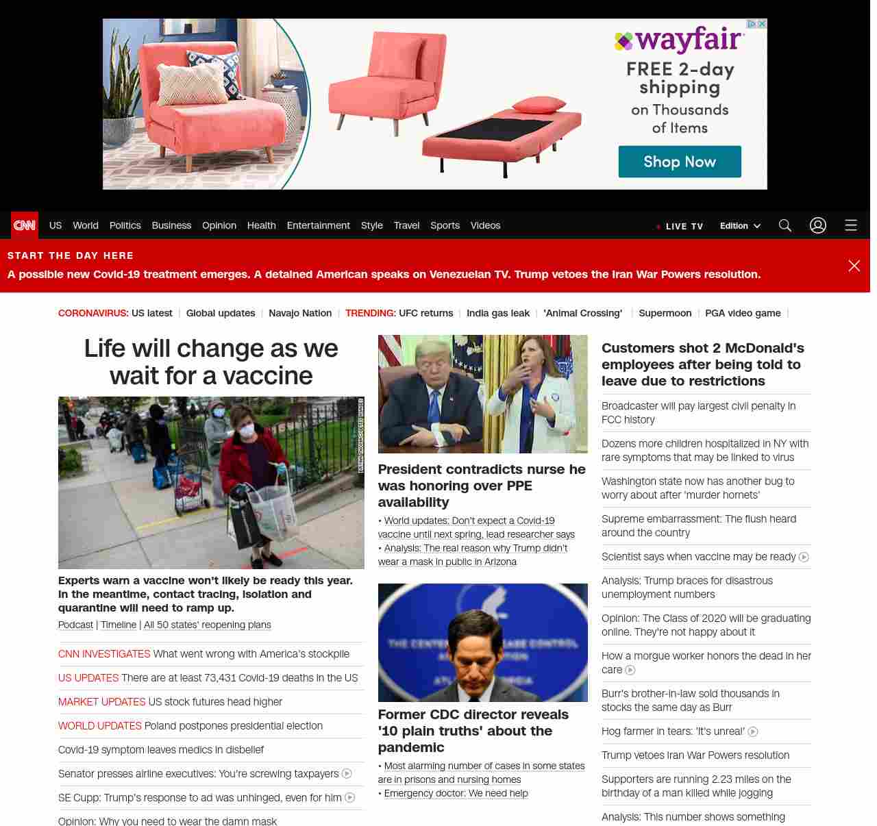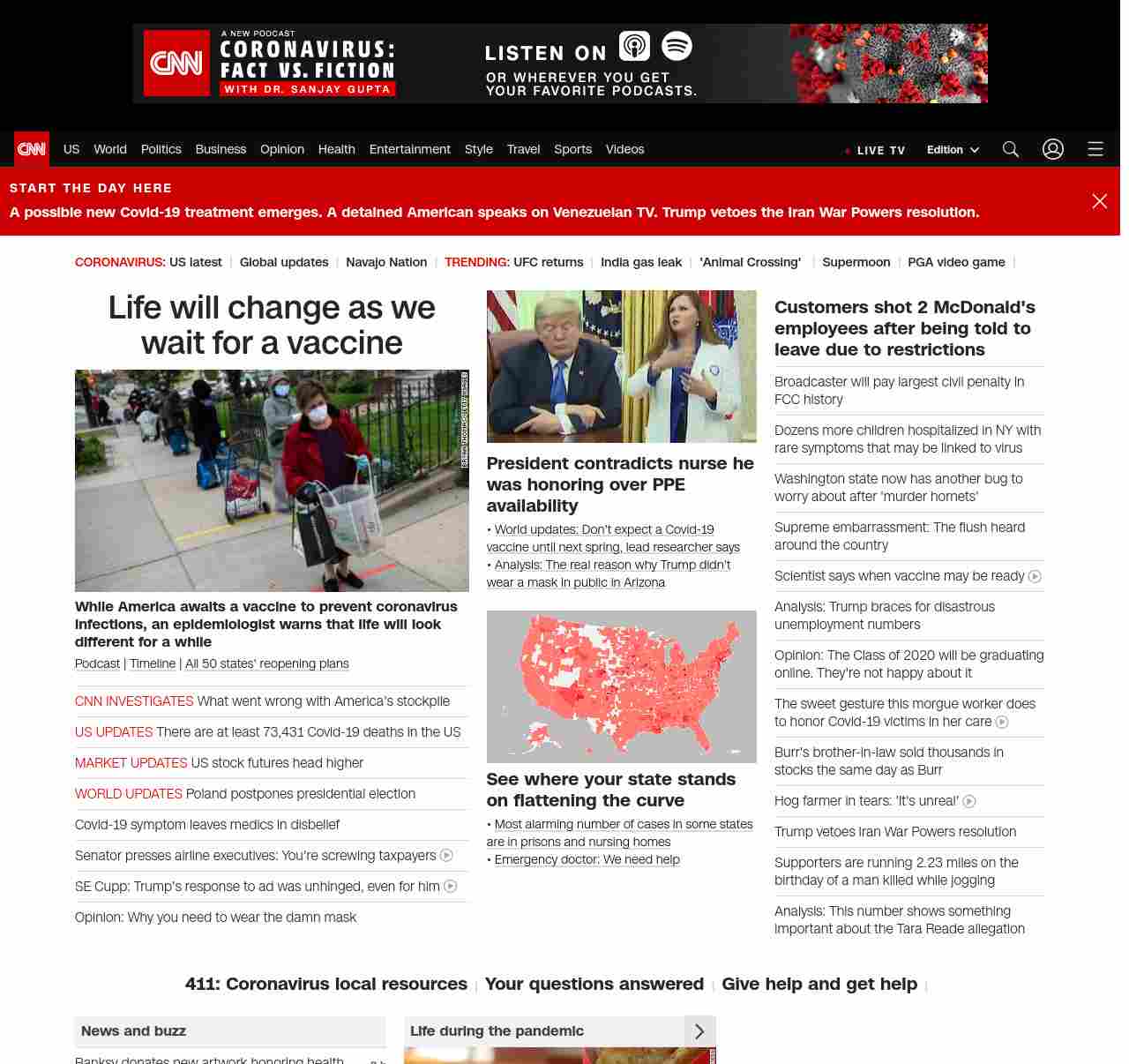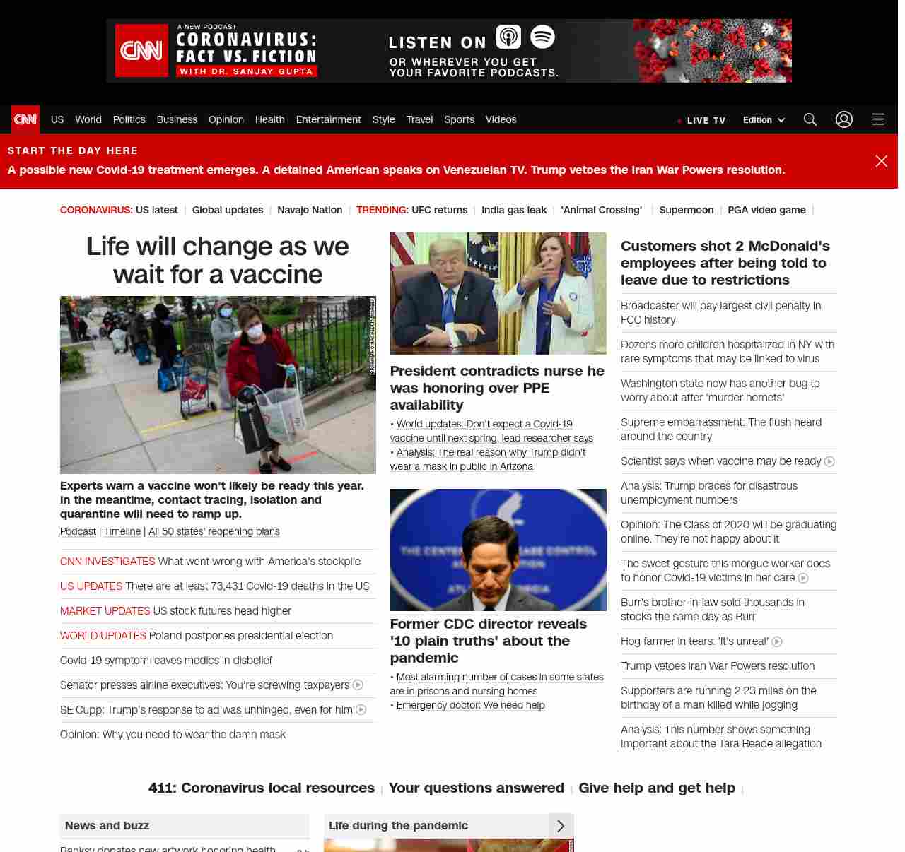 || screaming-banner-text banner-text-size–char-44″ data-analytics=”_list-hierarchical-xs_article_”> Life will change as we wait for a vaccine ||” , title: “CNN – Breaking News, Latest News and Videos” , siblings: {“articleList”:[{“uri”:”/2020/05/07/health/us-coronavirus-thursday/index.html”,”headline”:”u003cstrong>While America awaits a vaccine to prevent coronavirus infections, an epidemiologist warns that life will look different for a whileu003c/strong>”,”thumbnail”:”//cdn.cnn.com/cnnnext/dam/assets/200507041502-coronavirus-main-thursday-us-small-11.jpg”,”duration”:””,”description”:”u003ca href=”https://www.cnn.com/audio/podcasts/corona-virus” target=”_blank”>Podcastu003c/a> | u003ca href=”https://www.cnn.com/interactive/2020/health/covid19-pandemic-video-timeline/index.html” target=”_blank”>Timelineu003c/a> | u003ca href=”https://www.cnn.com/2020/05/07/world/coronavirus-newsletter-05-07-20-intl/index.html” target=”_blank”>Catch upu003c/a> | u003ca href=”https://www.cnn.com/interactive/2020/us/states-reopen-coronavirus-trnd/” target=”_blank”>All 50 states’ reopening plansu003c/a>”,”layout”:””