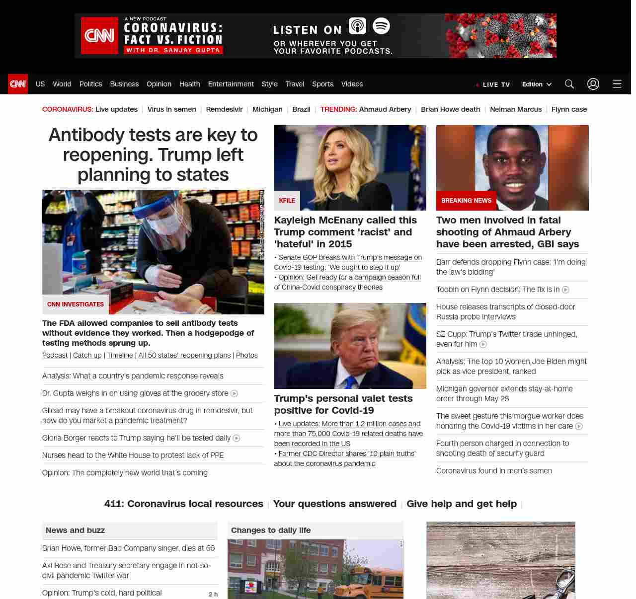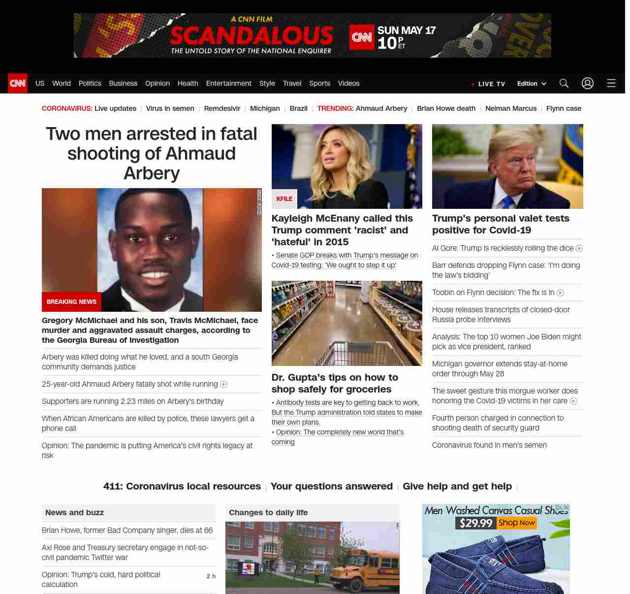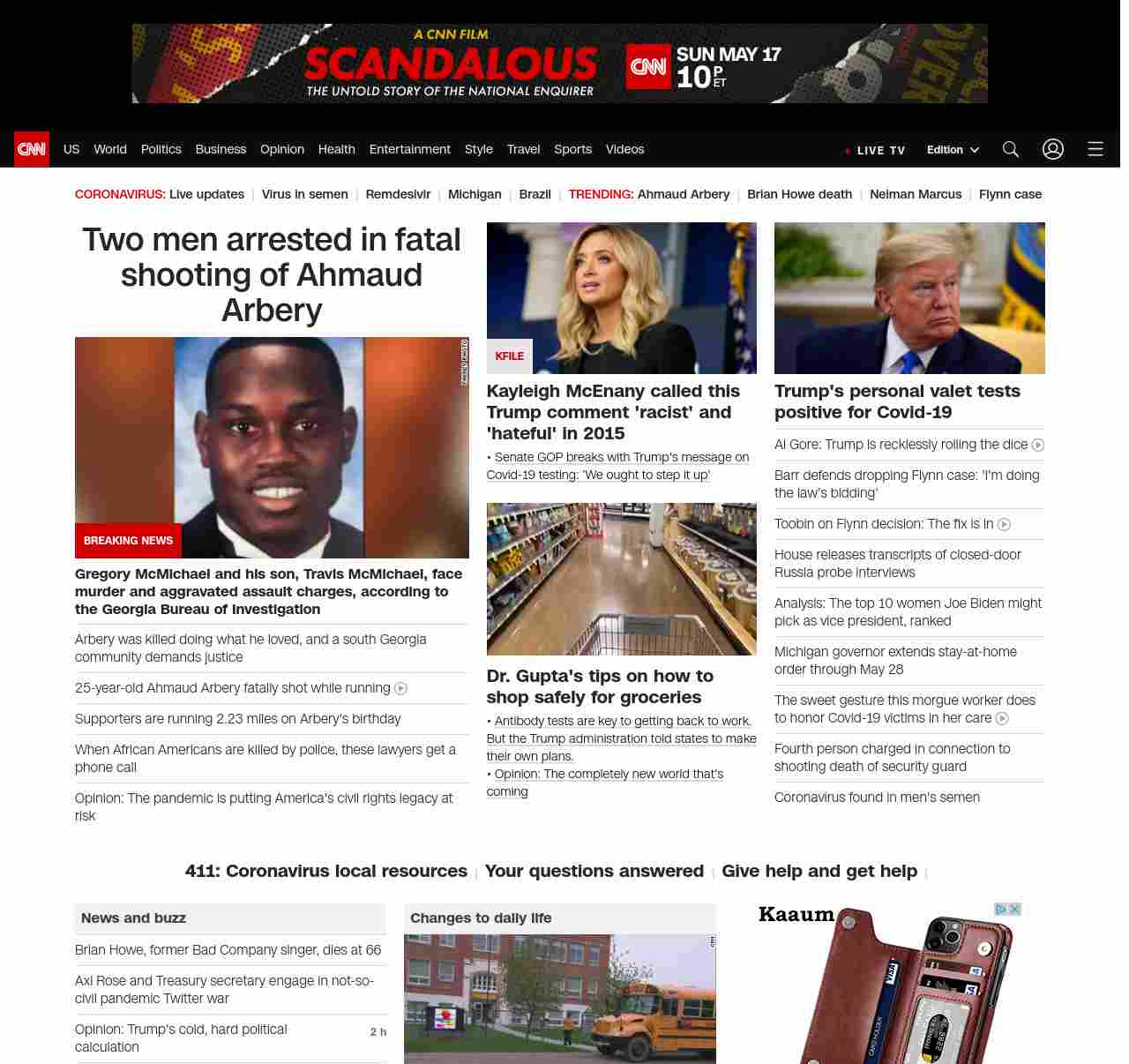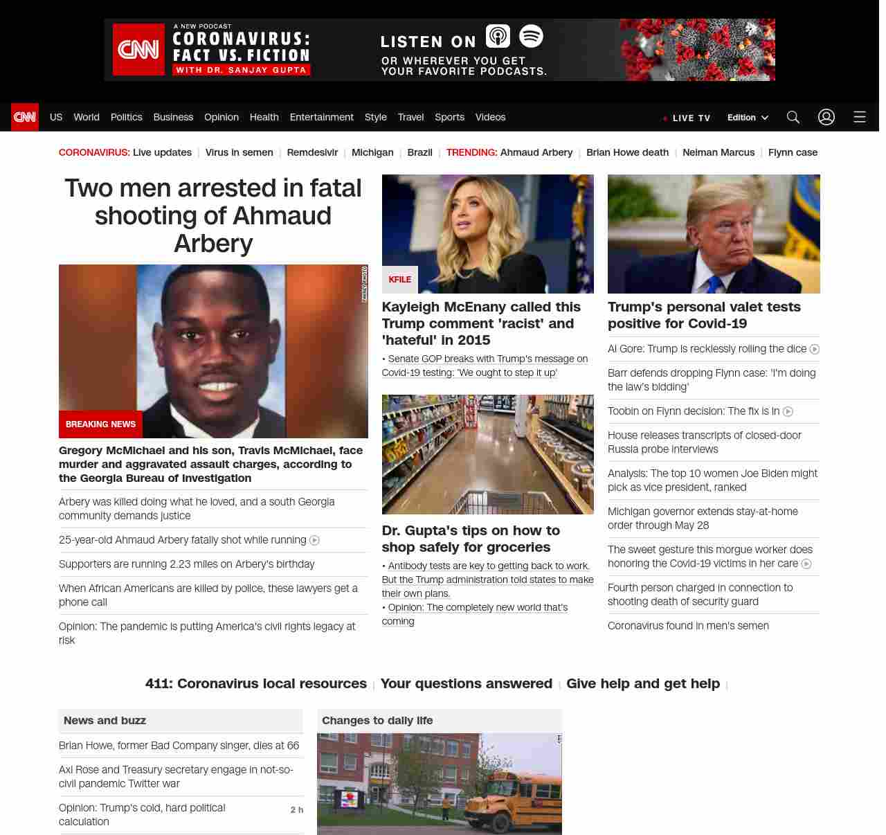 || screaming-banner-text banner-text-size–char-47″ data-analytics=”_list-hierarchical-xs_article_”> Two men arrested in fatal shooting of Ahmaud Arbery ||” , title: “CNN – Breaking News, Latest News and Videos” , siblings: {“articleList”:[{“uri”:”/2020/05/07/us/ahmaud-arbery-arrests-mcmichaels/index.html”,”headline”:”u003cstrong>Gregory McMichael and his son, Travis McMichael, face murder and aggravated assault charges, according to the Georgia Bureau of Investigationu003c/strong>”,”thumbnail”:”//cdn.cnn.com/cnnnext/dam/assets/200503221623-ahmaud-arbery-ctn-small-11.jpg”,”duration”:””,”description”:”Two men involved in the u003ca href=”https://www.cnn.com/2020/05/04/us/ahmaud-arbery-jogging-georgia-shooting/index.html” target=”_blank”>fatal shooting of a black manu003c/a> in Brunswick, Georgia, have been arrested and face murder and aggravated assault charges, according to the u003ca href=”https://gbi.georgia.gov/press-releases/2020-05-06/ahmaud-arbery-death-investigation” target=”_blank”>Georgia Bureau of Investigationu003c/a>.”,”layout”:””