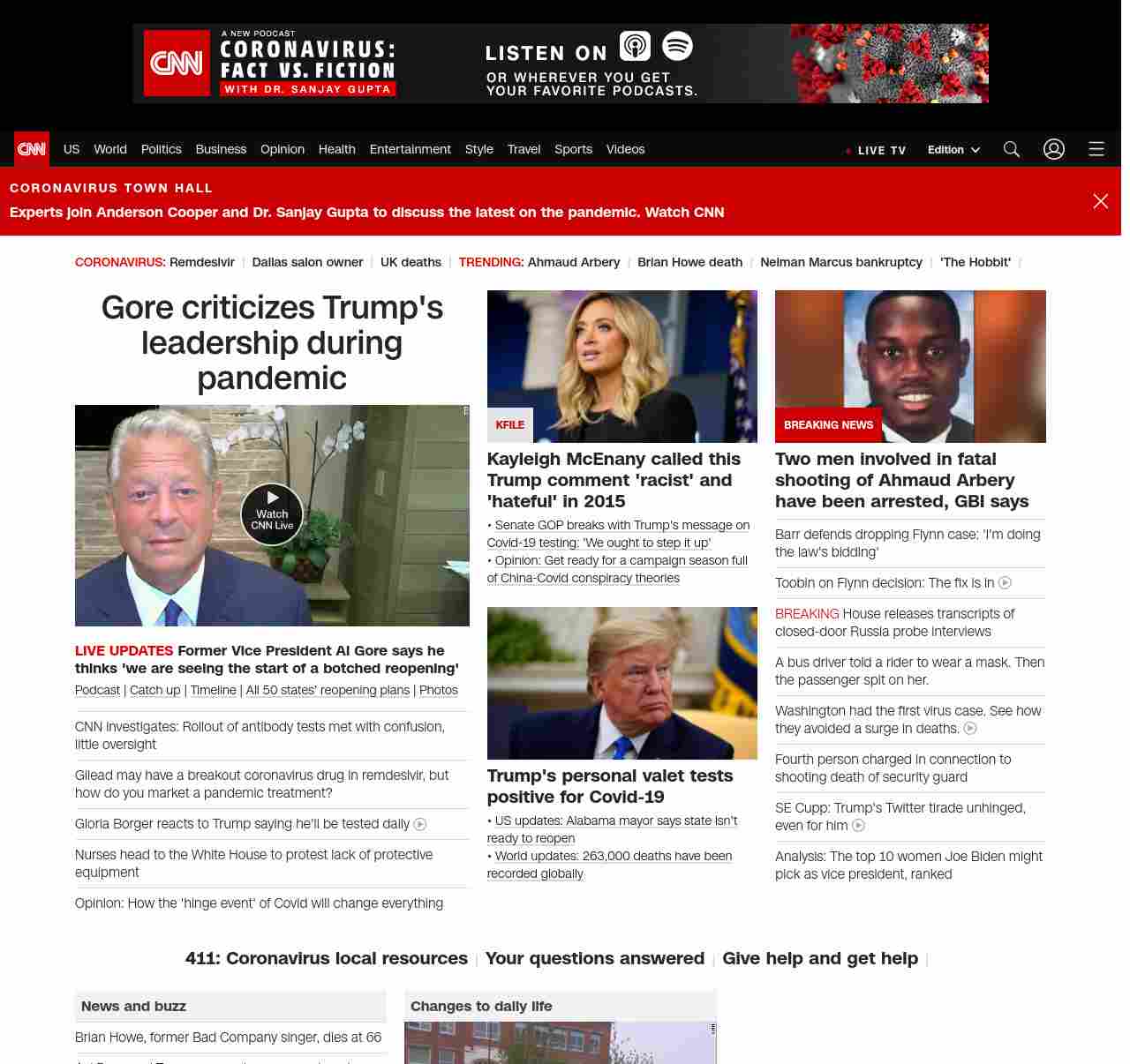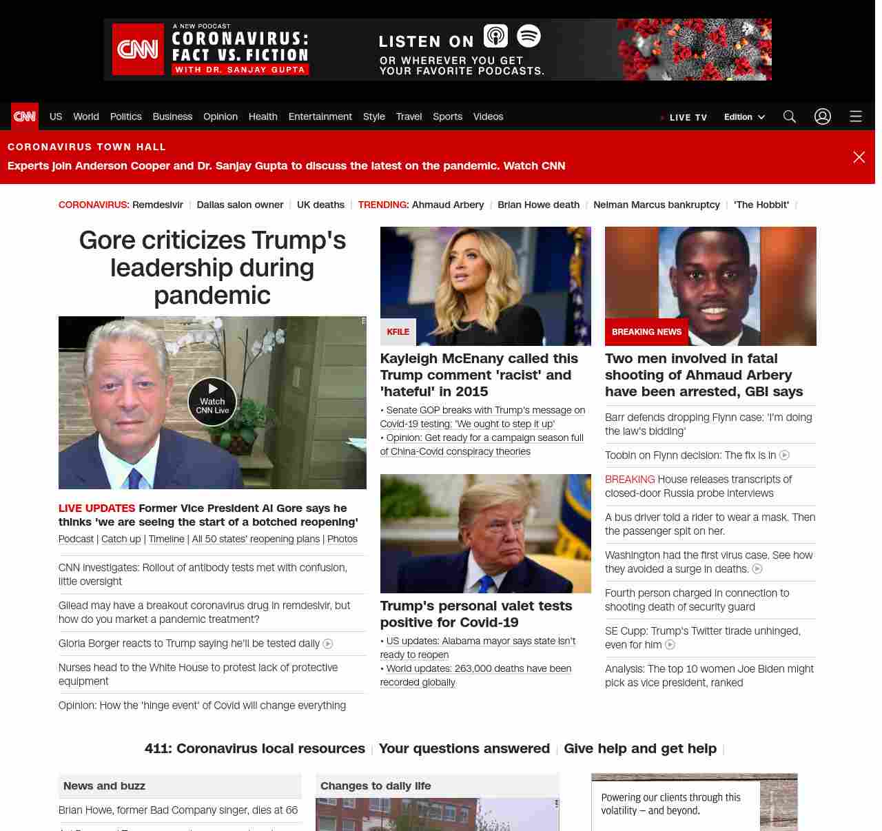 || screaming-banner-text banner-text-size–char-47″ data-analytics=”_list-hierarchical-xs_story_”> Gore criticizes Trump’s leadership during pandemic ||” , title: “CNN – Breaking News, Latest News and Videos” , siblings: {“articleList”:[{“uri”:”/2020/05/07/politics/coronavirus-antibody-testing-problems-cdc-fda-invs/index.html”,”headline”:”u003cstrong>The FDA allowed companies to sell antibody tests without evidence they worked. Then a hodgepodge of testing methods sprung up. u003c/strong>”,”thumbnail”:”//cdn.cnn.com/cnnnext/dam/assets/200502162248-brooklyn-antibody-testing-0425-restricted-small-11.jpg”,”duration”:””,”description”:”u003ca href=”https://www.cnn.com/audio/podcasts/corona-virus” target=”_blank”>Podcastu003c/a> | u003ca href=”https://www.cnn.com/us/live-news/us-coronavirus-update-05-07-20/h_571ad94e608077c5665cba2b933ab886″ target=”_blank”>Catch upu003c/a> | u003ca href=”https://www.cnn.com/interactive/2020/health/covid19-pandemic-video-timeline/index.html” target=”_blank”>Timelineu003c/a> | u003ca href=”https://www.cnn.com/interactive/2020/us/states-reopen-coronavirus-trnd/” target=”_blank”>All 50 states’ reopening plansu003c/a> | u003ca href=”http://www.cnn.com/2020/04/24/world/gallery/coronavirus-after-lockdown/index.html” target=”_blank”>Photosu003c/a>”,”layout”:””