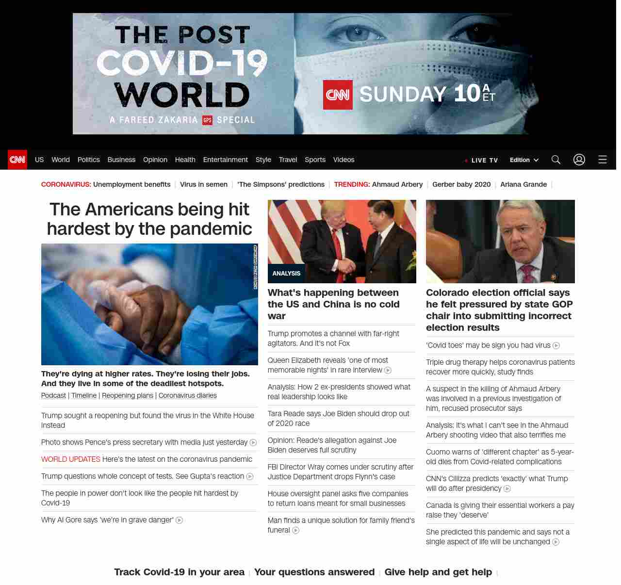 || screaming-banner-text banner-text-size–char-47″ data-analytics=”_list-hierarchical-xs_article_”> The Americans being hit hardest by the pandemic ||” , title: “CNN – Breaking News, Latest News and Videos” , siblings: {“articleList”:[{“uri”:”/2020/05/08/us/coronavirus-pandemic-race-impact-trnd/index.html”,”headline”:”u003cstrong>They’re dying at higher rates. They’re losing their jobs. And they live in some of the deadliest hotspots.u003c/strong>”,”thumbnail”:”//cdn.cnn.com/cnnnext/dam/assets/200508203513-coronavirus-patient-chicago-0428-small-11.jpg”,”duration”:””,”description”:”u003ca href=”https://www.cnn.com/audio/podcasts/corona-virus” target=”_blank”>Podcastu003c/a> | u003ca href=”https://www.cnn.com/interactive/2020/health/covid19-pandemic-video-timeline/index.html” target=”_blank”>Timelineu003c/a> | u003ca href=”https://www.cnn.com/interactive/2020/us/states-reopen-coronavirus-trnd/” target=”_blank”>Reopening plansu003c/a> | u003ca href=”https://www.cnn.com/specials/world/coronavirus-diaries” target=”_blank”>Coronavirus diariesu003c/a>”,”layout”:””