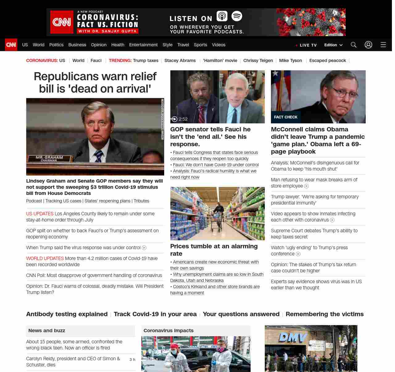 CNN3: “:”u003cstrong>Lindsey Graham and Senate GOP members say they will not support the sweeping $3 trillion Covid-19 stimulus bill from House Democratsu003c/strong>”, “BANNER=|pagerendered| ((lubuntu at wor3))