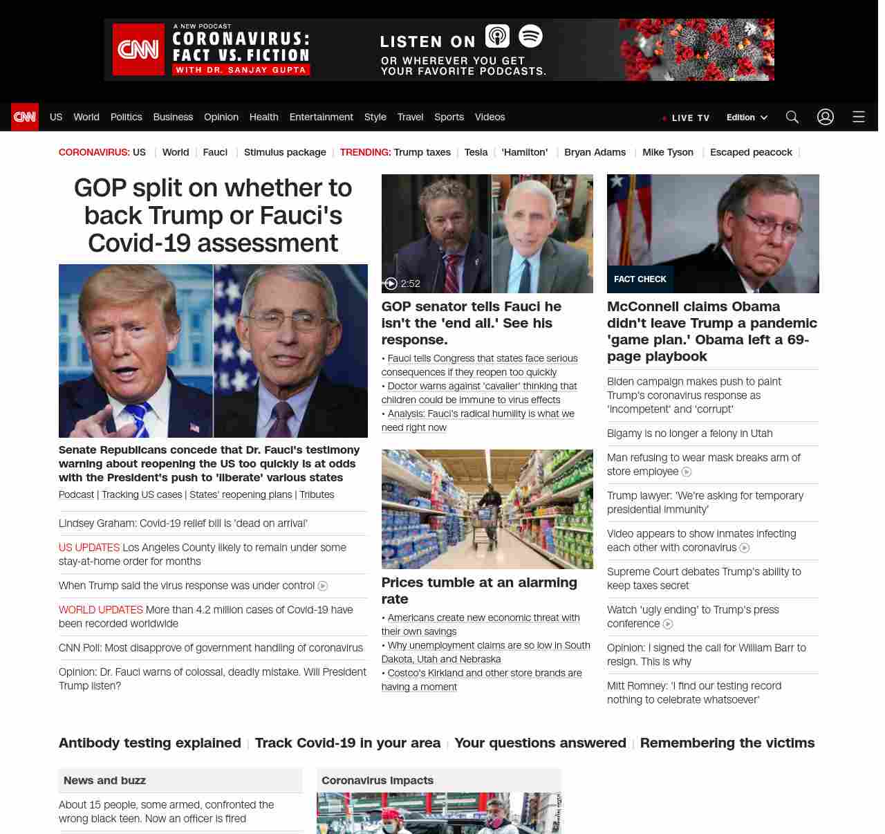 CNN1: FOXVCNN=|GOP split on whether to back Trump or Fauci’s Covid-19 assessment| ((lubuntu at wor3))