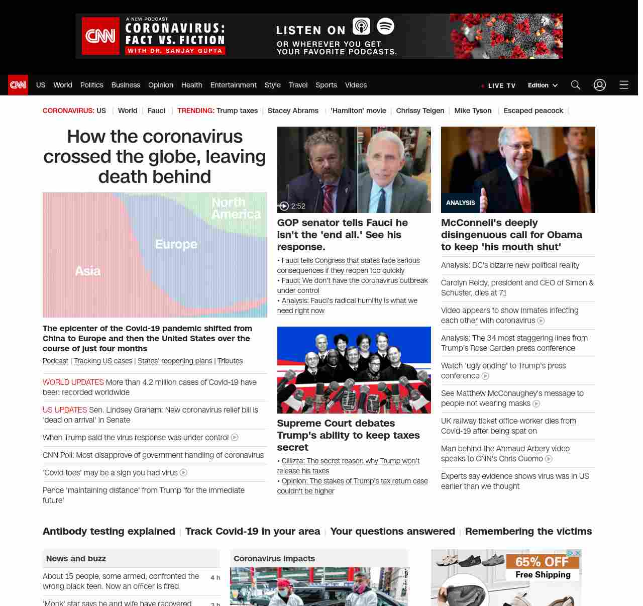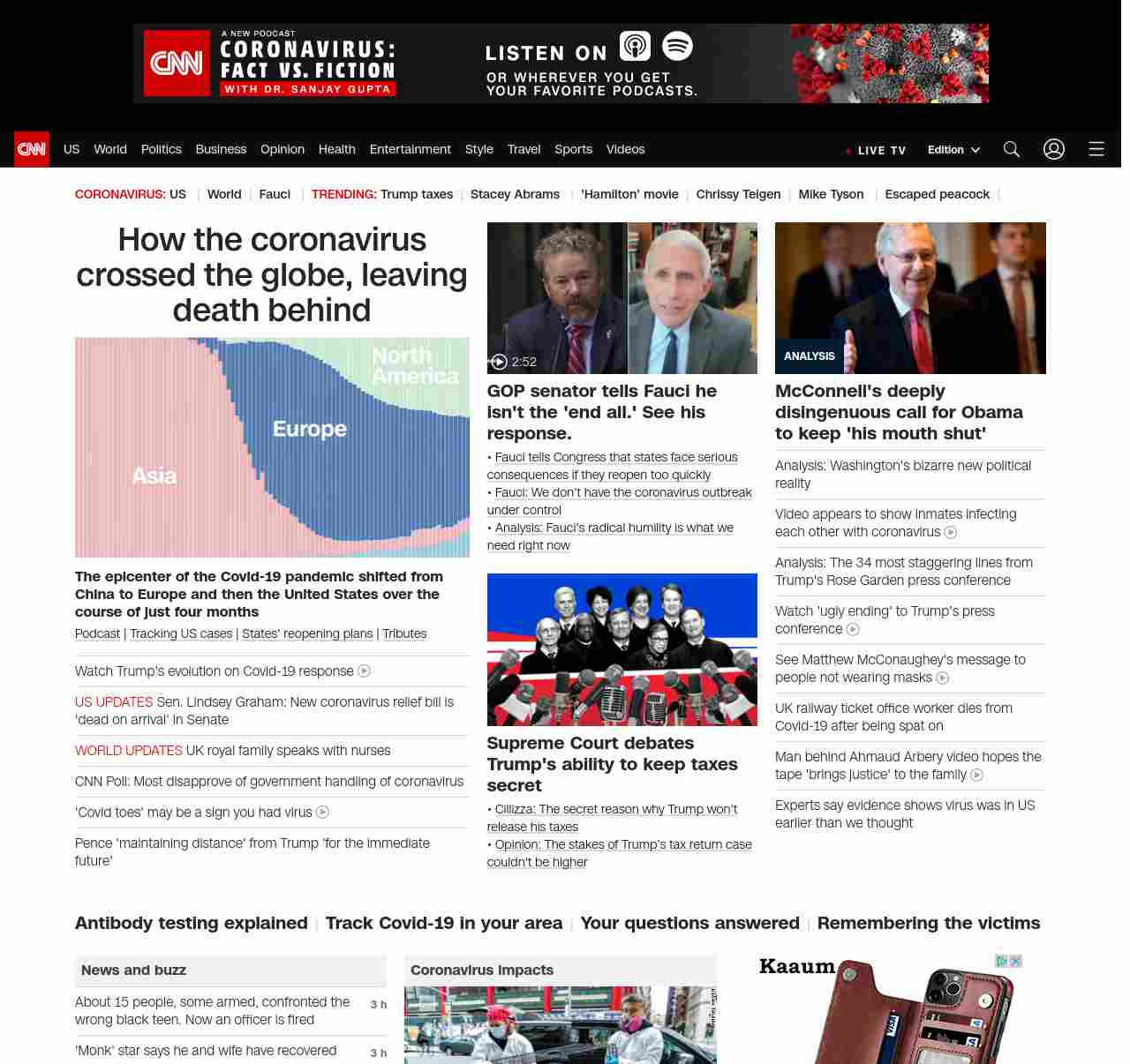 || screaming-banner-text banner-text-size–char-47″ data-analytics=”_list-hierarchical-xs_hyperlink_”> How the coronavirus crossed the globe, leaving death behind ||” , title: “CNN – Breaking News, Latest News and Videos” , siblings: {“articleList”:[{“uri”:”/us/live-news/us-coronavirus-update-05-12-20/index.html”,”headline”:”White House press secretary defends not wearing a mask at the podium during briefing “,”thumbnail”:”//cdn.cnn.com/cnnnext/dam/assets/200213175739-03-coronavirus-0213-small-11.jpg”,”duration”:””,”description”:””,”layout”:””