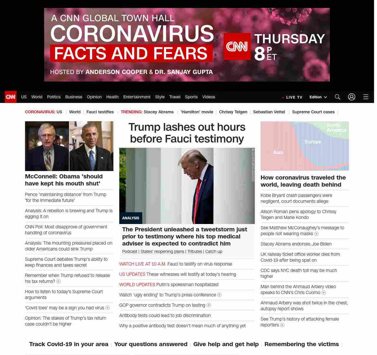 || screaming-banner-text banner-text-size–char-47″ data-analytics=”_list-hierarchical-xs_article_”> Trump lashes out hours before Fauci testimony ||” , title: “CNN – Breaking News, Latest News and Videos” , siblings: {“articleList”:[{“uri”:”/2020/05/12/politics/trump-taxes-financial-records-supreme-court/index.html”,”headline”:”Supreme Court debates Trump’s ability to keep finances and taxes secret”,”thumbnail”:”//cdn.cnn.com/cnnnext/dam/assets/200502084802-20200502-supreme-court-live-audio-gfx-small-11.jpg”,”duration”:””,”description”:”The u003ca href=”http://www.cnn.com/2013/06/10/us/u-s-supreme-court-fast-facts/index.html” target=”_blank”>Supreme Court u003c/a>will consider Tuesday whether the House of Representatives and a New York prosecutor can subpoena President Donald Trump’s accounting firm and banks for his financial documents, two momentous disputes concerning separation of powers and Trump’s broad claims of immunity. “,”layout”:””