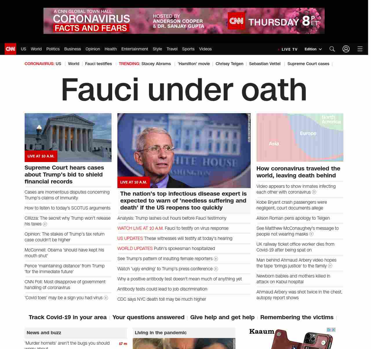 || banner-text–maximized banner-text-size–char-17″> Fauci under oath ||” , title: “CNN – Breaking News, Latest News and Videos” , siblings: {“articleList”:[{“uri”:”/politics/live-news/trump-supreme-court-cases-05-12-20/index.html”,”headline”:”Supreme Court hears cases about Trump’s bid to shield financial records”,”thumbnail”:”//cdn.cnn.com/cnnnext/dam/assets/200505115028-01-scotus-may-2020-small-11.jpg”,”duration”:””,”description”:””,”layout”:””