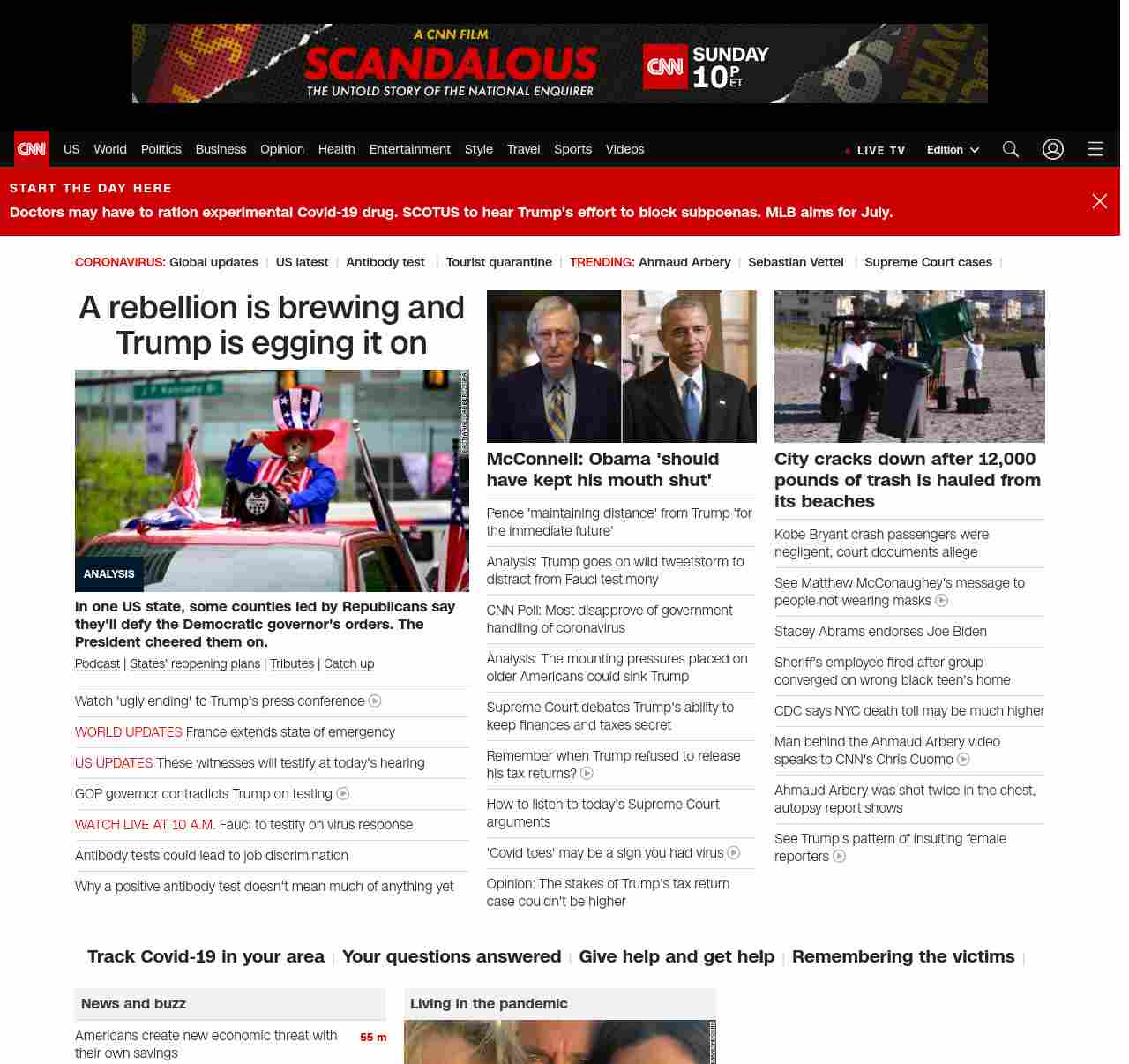 || screaming-banner-text banner-text-size–char-47″ data-analytics=”_list-hierarchical-xs_article_”> A rebellion is brewing and Trump is egging it on ||” , title: “CNN – Breaking News, Latest News and Videos” , siblings: {“articleList”:[{“uri”:”/2020/05/11/politics/what-matters-may-11/index.html”,”headline”:”u003cstrong>In one US state, some counties led by Republicans say they’ll defy the Democratic governor’s orders. The President cheered them on.u003c/strong>”,”thumbnail”:”//cdn.cnn.com/cnnnext/dam/assets/200512081727-01-reopen-protest-philadelphia-pennsylvania-0508-restricted-small-11.jpg”,”duration”:””,”description”:”u003ca href=”https://www.cnn.com/audio/podcasts/corona-virus” target=”_blank”>Podcastu003c/a> | u003ca href=”https://www.cnn.com/interactive/2020/us/states-reopen-coronavirus-trnd/” target=”_blank”>States’ reopening plansu003c/a> | u003ca href=”https://www.cnn.com/interactive/2020/health/coronavirus-victims-memories/” target=”_blank”>Tributesu003c/a> | u003ca href=”https://www.cnn.com/2020/05/12/world/coronavirus-newsletter-05-12-20-intl/index.html” target=”_blank”>Catch upu003c/a>”,”layout”:””