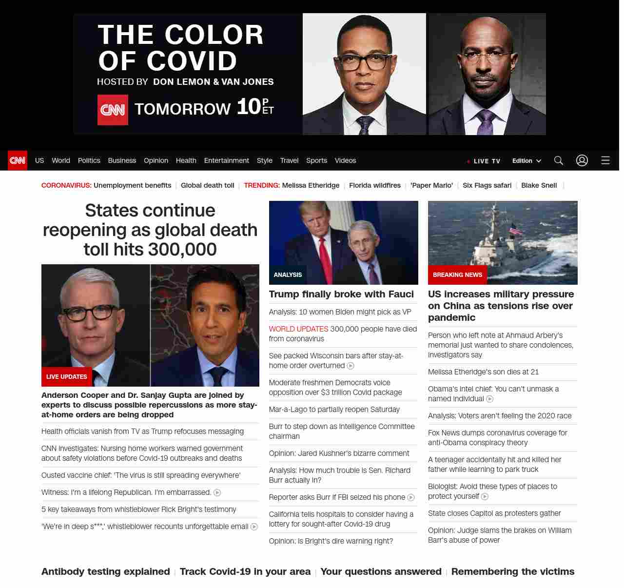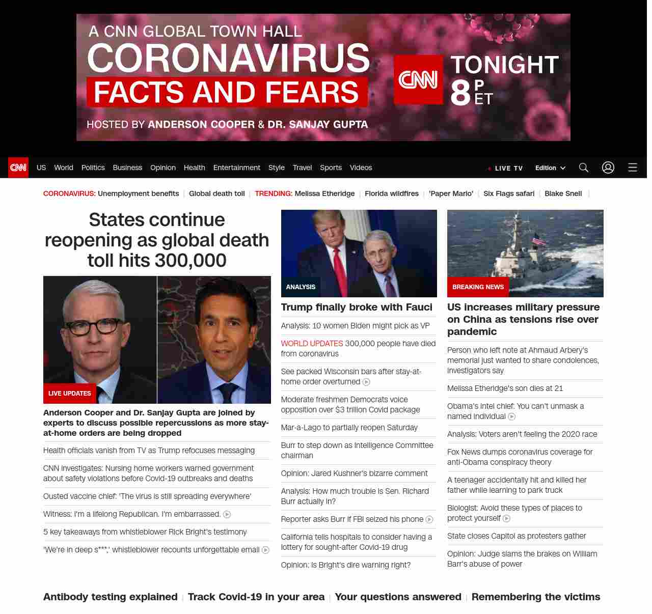 CNN1: FOXVCNN=|States continue reopening as global death toll hits 300, 000| ((lubuntu at wor3))