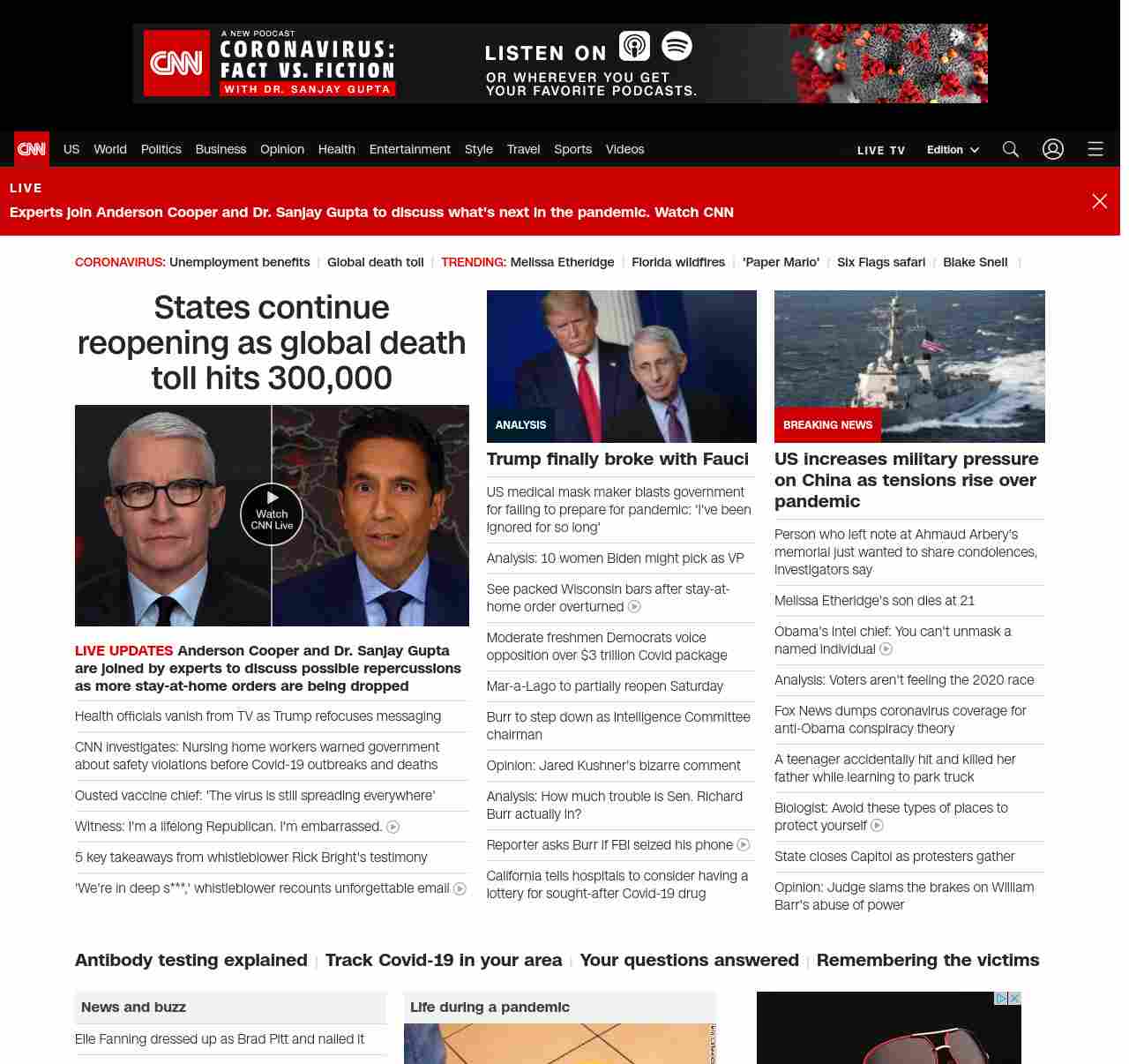 CNN1: FOXVCNN=|States continue reopening as global death toll hits 300, 000| ((lubuntu at wor3))