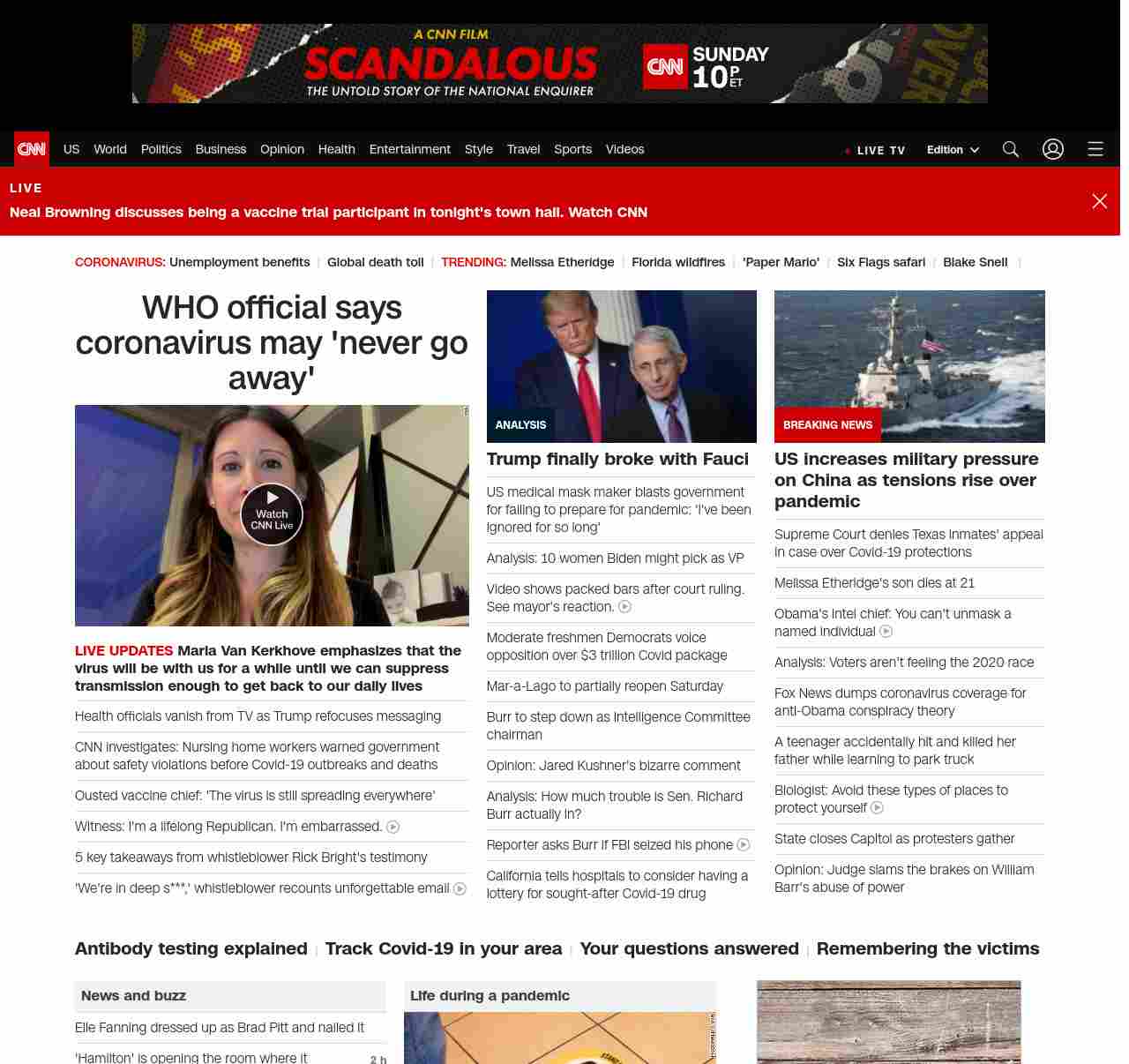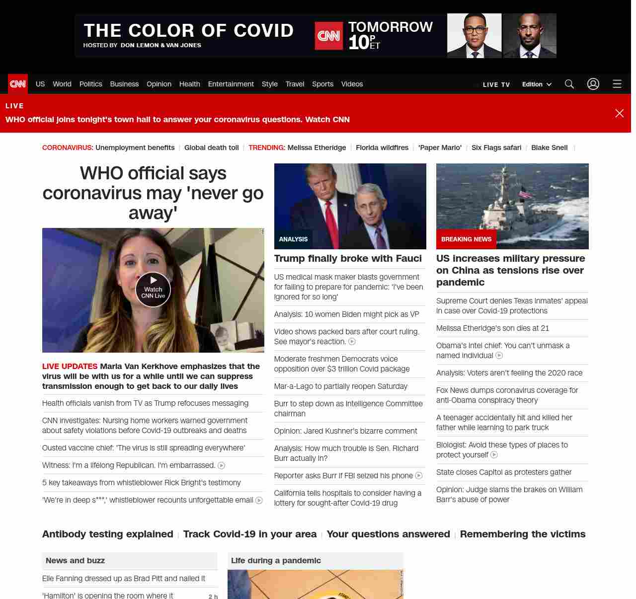CNN1: FOXVCNN=|WHO official says coronavirus may ‘never go away’| ((lubuntu at wor3))