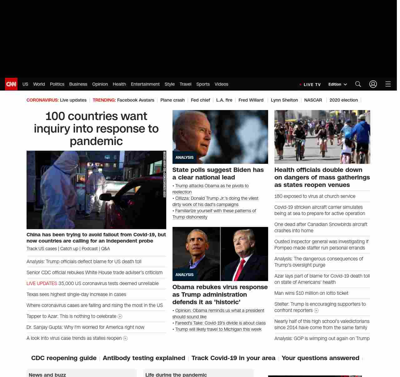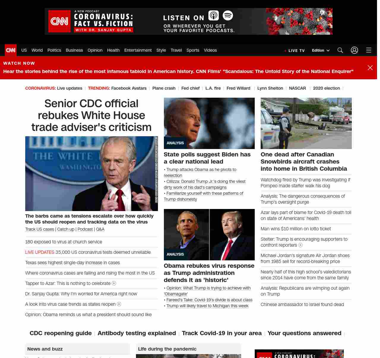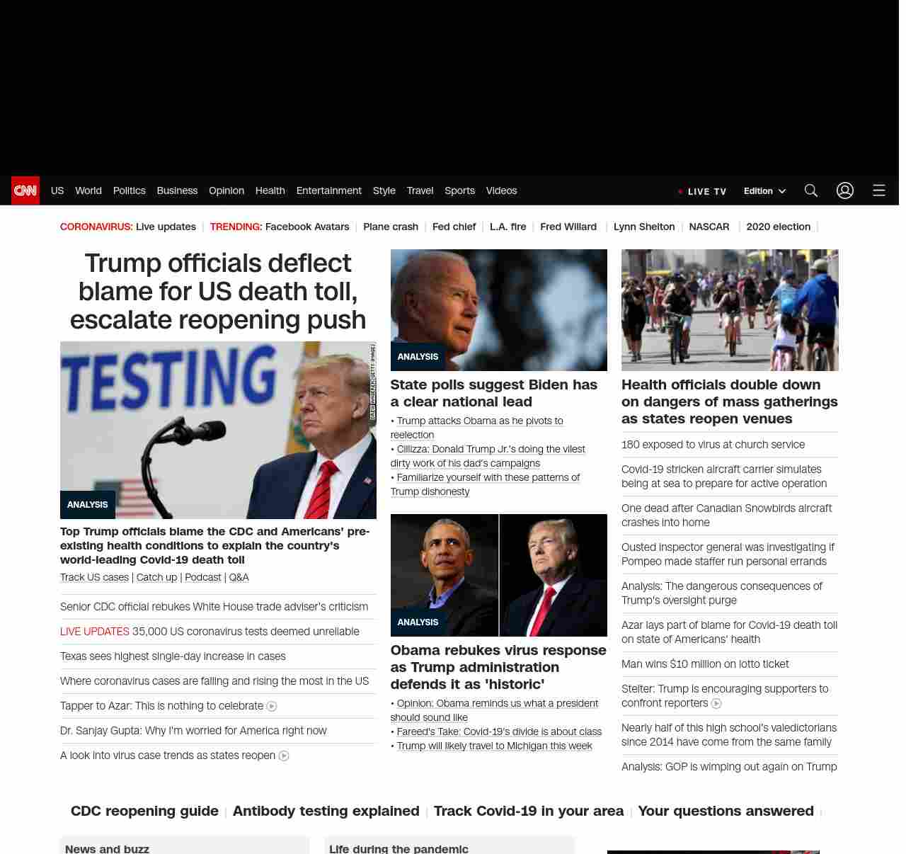 CNN1: FOXVCNN=|Trump officials deflect blame for US death toll, escalate reopening push| ((lubuntu at wor3))