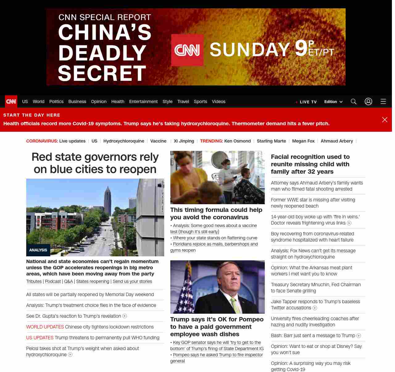 CNN1: FOXVCNN=|Red state governors rely on blue cities to reopen| ((lubuntu at wor3))