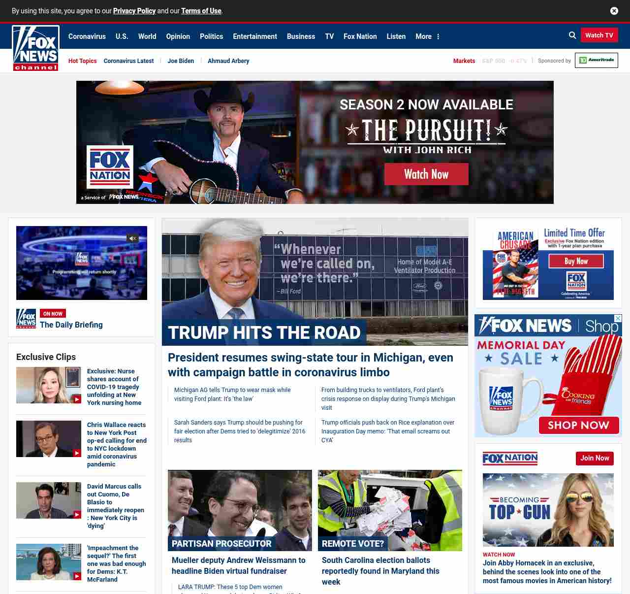 FN: [[TRUMP HITS THE ROAD]] President resumes swing-state tour in Michigan, even with campaign battle in coronavirus limbo ((lubuntu at wor3))