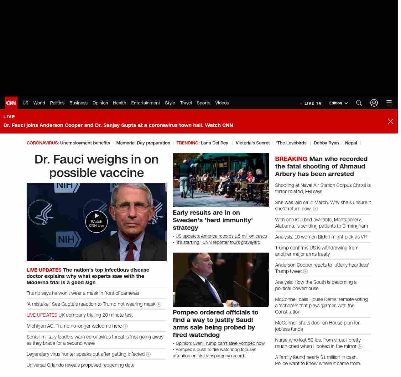 CNN1: FOXVCNN=|Dr. Fauci weighs in on possible vaccine| ((lubuntu at wor3))