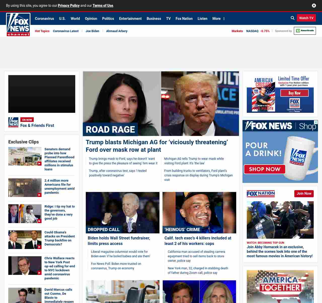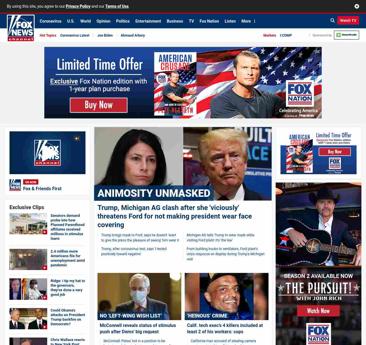 FN: [[ANIMOSITY UNMASKED]] Trump, Michigan AG clash after she ' viciously' threatens Ford for not making president wear face covering ((lubuntu at wor3))
