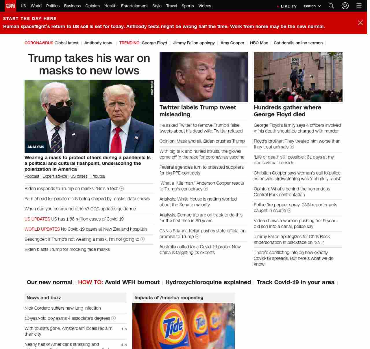 CNN1: FOXVCNN=|Trump takes his war on masks to new lows| ((lubuntu at wor3))