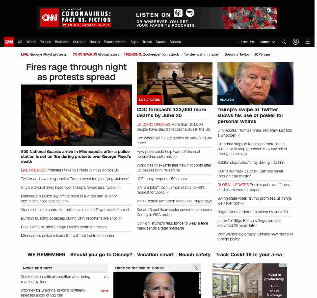CNN1: FOXVCNN=|Fires rage through night as protests spread| ((lubuntu at wor3))