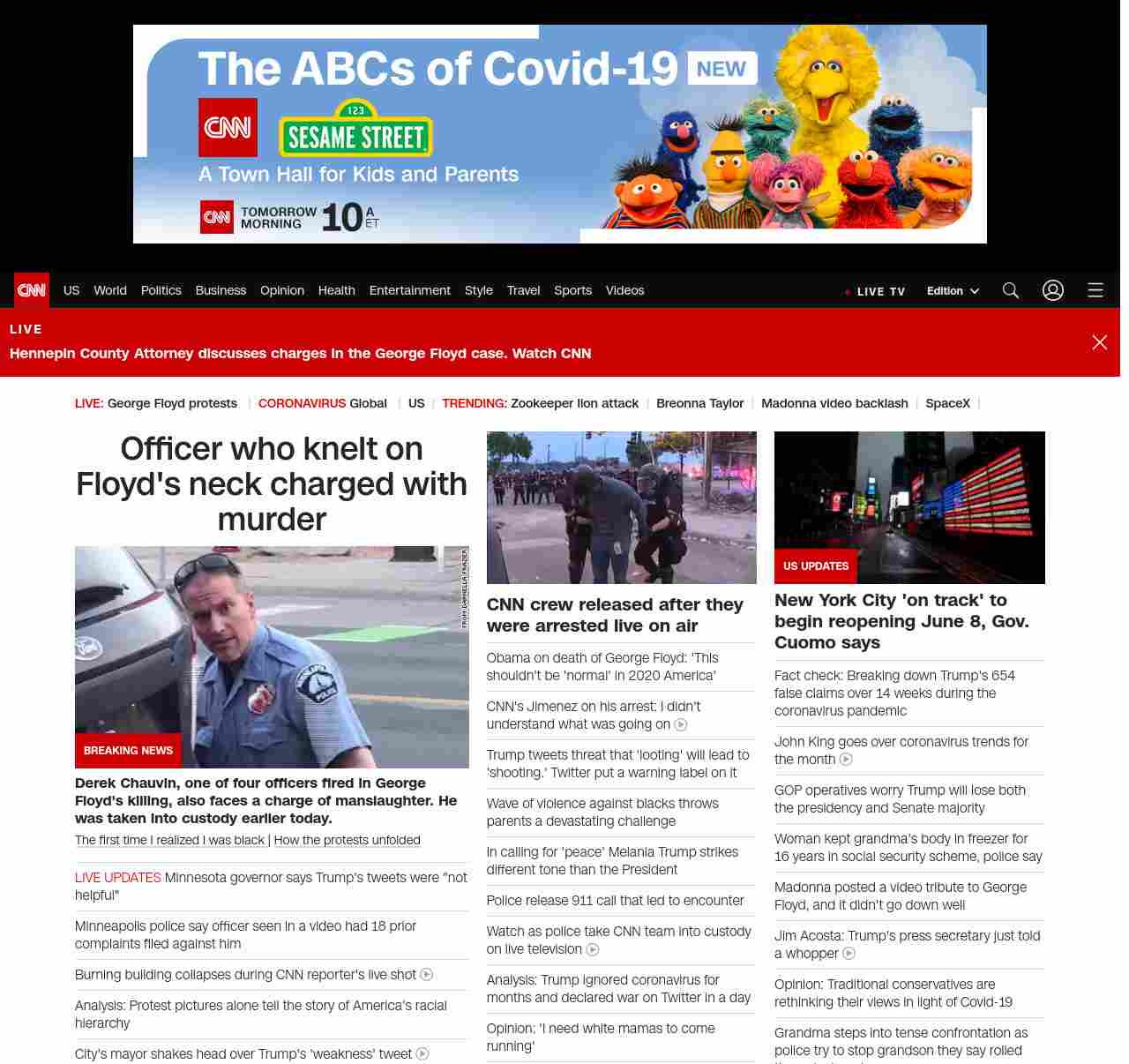 CNN1: FOXVCNN=|Officer who knelt on Floyd’s neck charged with murder| ((lubuntu at wor3))