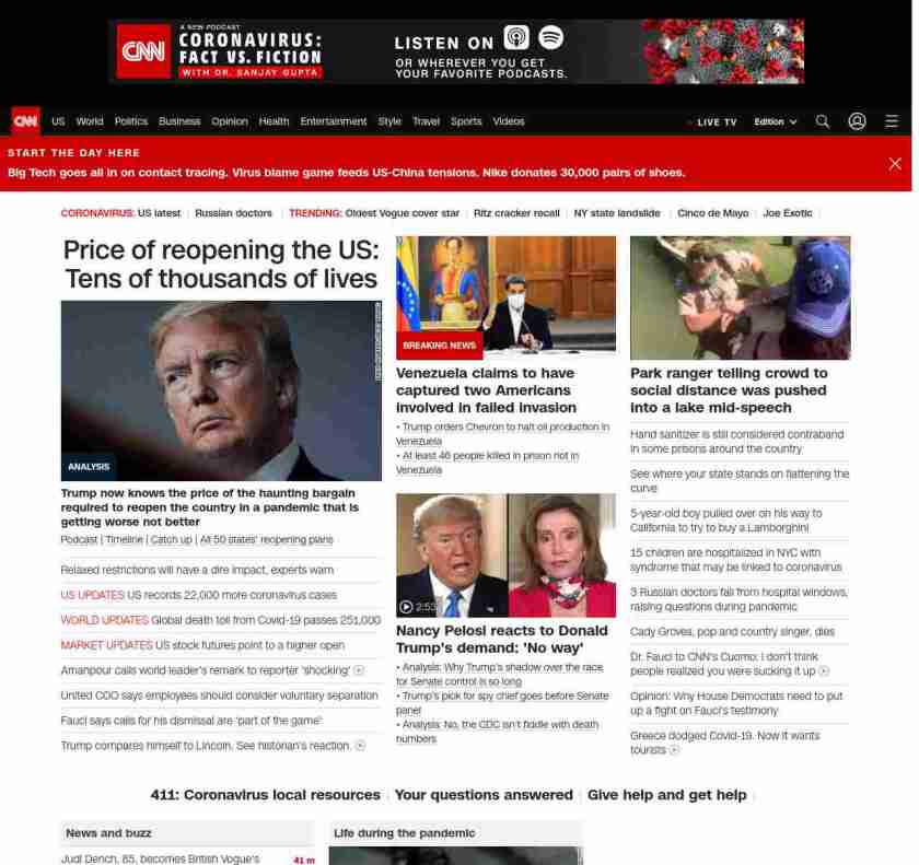 || screaming-banner-text banner-text-size–char-47″ data-analytics=”_list-hierarchical-xs_article_”> Price of reopening the US: Tens of thousands of lives ||” , title: “CNN – Breaking News, Latest News and Videos” , siblings: {“articleList”:[{“uri”:”/2020/05/05/politics/donald-trump-coronavirus-economy-models/index.html”,”headline”:”u003cstrong>Trump now knows the price of the haunting bargain required to reopen the country in a pandemic that is getting worse not betteru003c/strong>”,”thumbnail”:”//cdn.cnn.com/cnnnext/dam/assets/200505103005-01-trump-0505-small-11.jpg”,”duration”:””,”description”:”u003ca href=”https://www.cnn.com/audio/podcasts/corona-virus” target=”_blank”>Podcastu003c/a> | u003ca href=”https://www.cnn.com/interactive/2020/health/covid19-pandemic-video-timeline/index.html” target=”_blank”>Timelineu003c/a> | u003ca href=”https://www.cnn.com/2020/05/05/world/coronavirus-newsletter-05-05-20-intl/index.html” target=”_blank”>Catch upu003c/a> | u003ca href=”https://www.cnn.com/interactive/2020/us/states-reopen-coronavirus-trnd/” target=”_blank”>All 50 states’ reopening plansu003c/a>”,”layout”:””