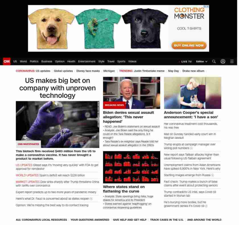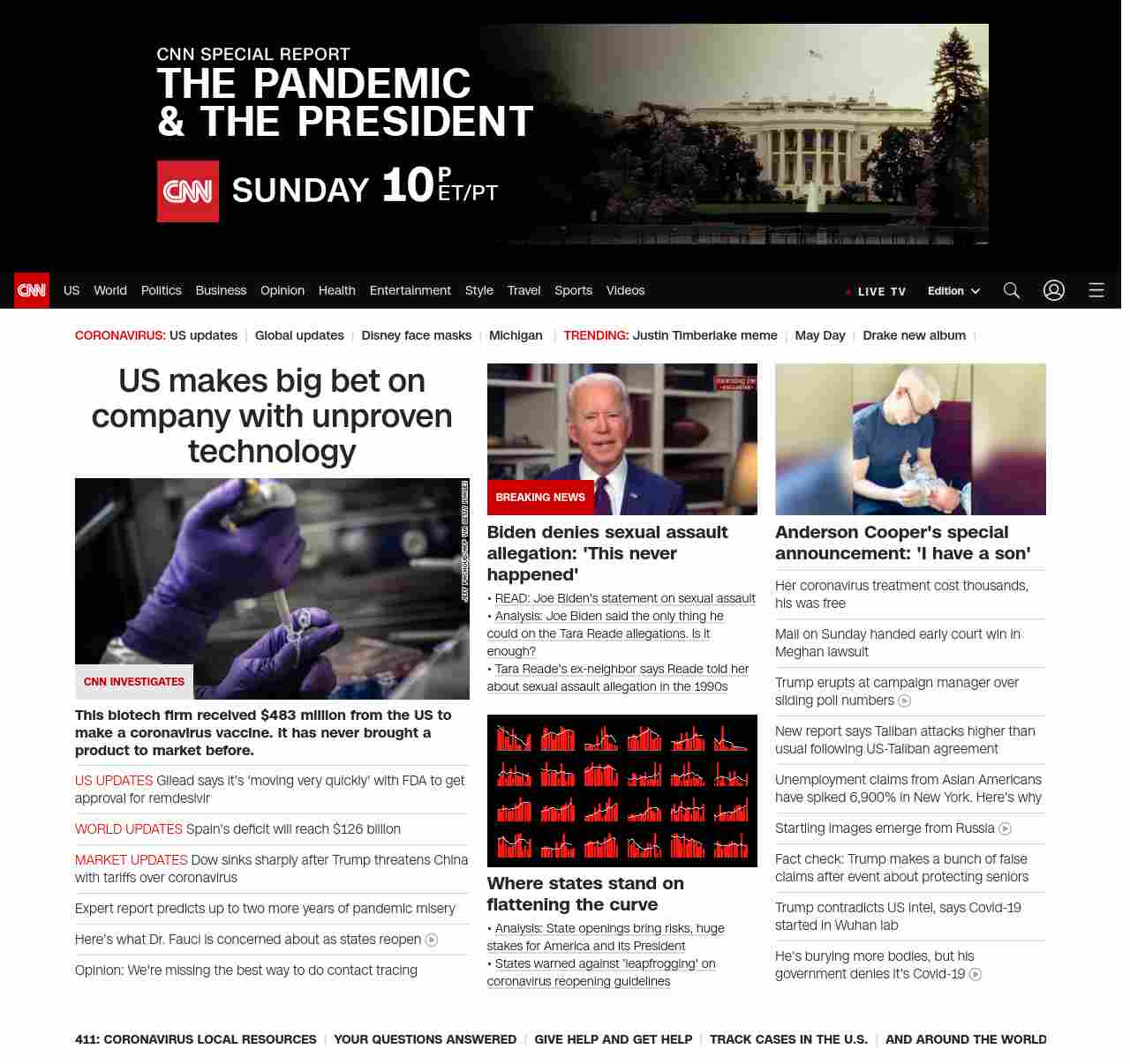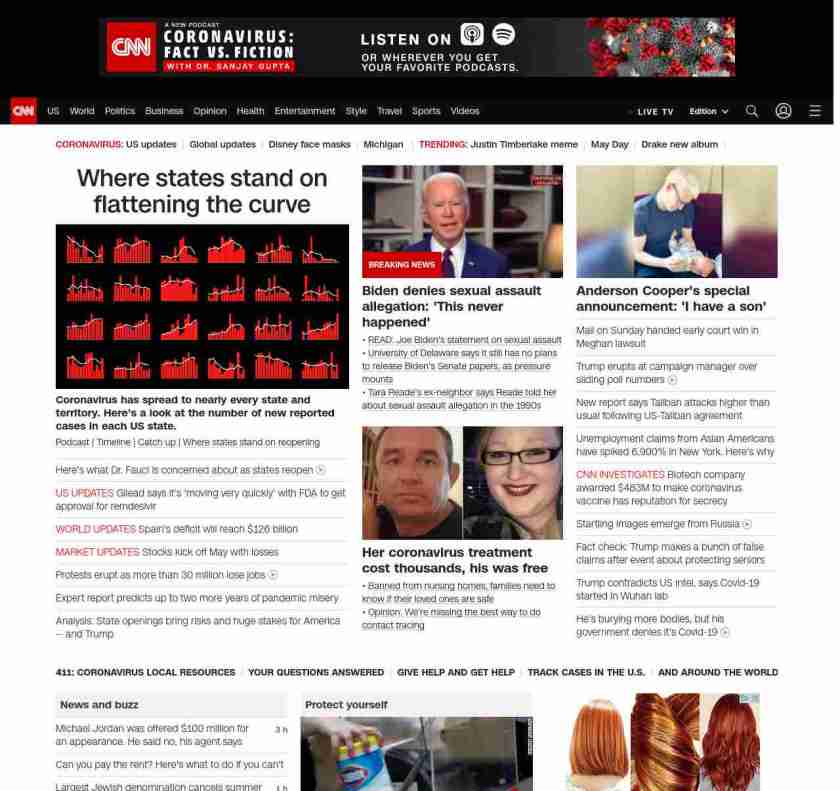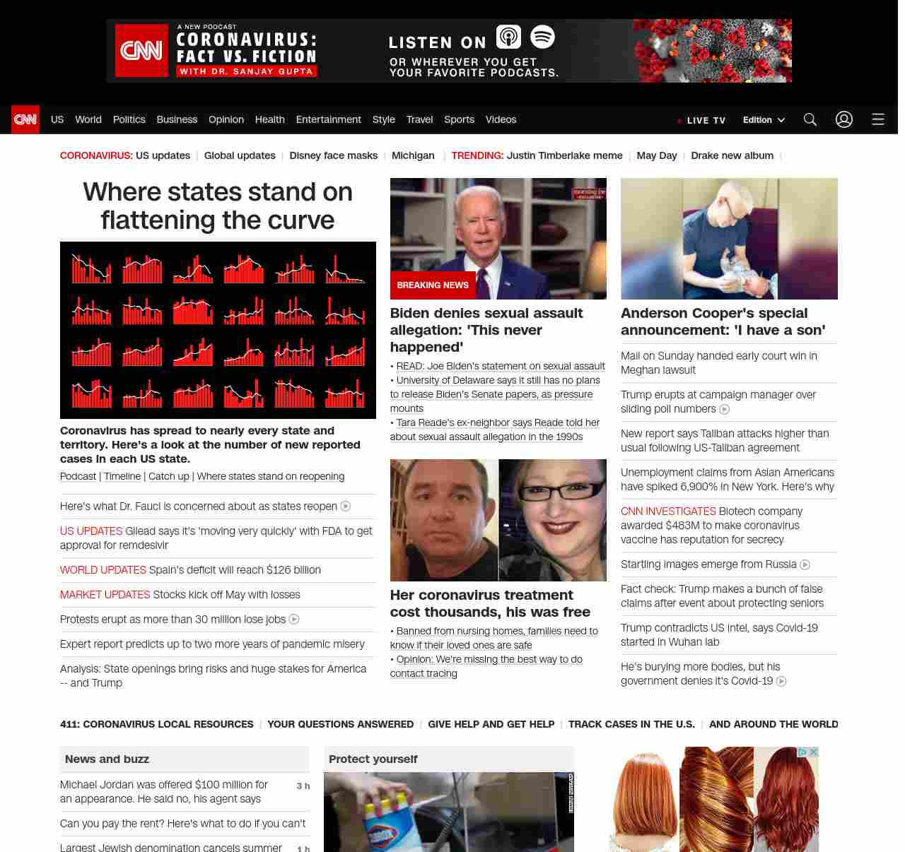 || screaming-banner-text banner-text-size–char-44″ data-analytics=”_list-hierarchical-xs_hyperlink_”> Where states stand on flattening the curve ||” , title: “CNN – Breaking News, Latest News and Videos” , siblings: {“articleList”:[{“uri”:”/2020/05/01/us/coronavirus-moderna-vaccine-invs/index.html”,”headline”:”u003cstrong>This biotech firm received $483 million from the US to make a coronavirus vaccine. It has never brought a product to market before.u003c/strong>”,”thumbnail”:”//cdn.cnn.com/cnnnext/dam/assets/200228111204-01-coronavirus-treatment-testing-0205-small-11.jpg”,”duration”:””,”description”:”u003ca href=”https://www.cnn.com/audio/podcasts/corona-virus” target=”_blank”>Podcastu003c/a> | u003ca href=”https://www.cnn.com/interactive/2020/health/covid19-pandemic-video-timeline/index.html” target=”_blank”>Timelineu003c/a> | u003ca href=”https://www.cnn.com/2020/05/01/world/coronavirus-newsletter-05-01-20/index.html” target=”_blank”>Catch upu003c/a> | u003ca href=”https://www.cnn.com/interactive/2020/us/states-reopen-coronavirus-trnd/” target=”_blank”>Where states stand on reopeningu003c/a>”,”layout”:””