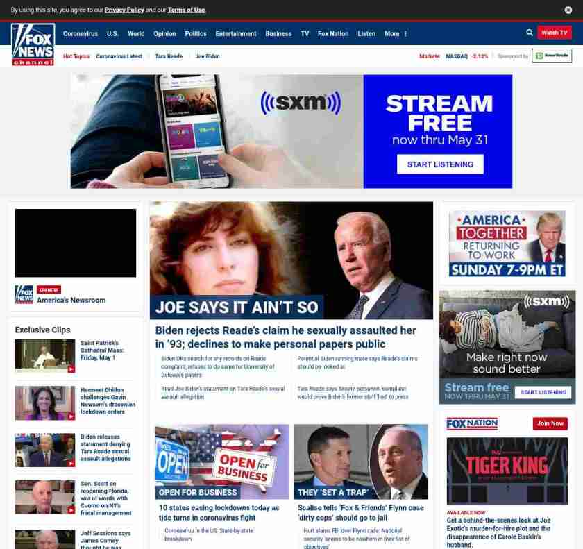 Joe Biden defends himself for the first time on TV after releasing a statement denying the Tara Reade sexual assault allegation; Geraldo Rivera reacts