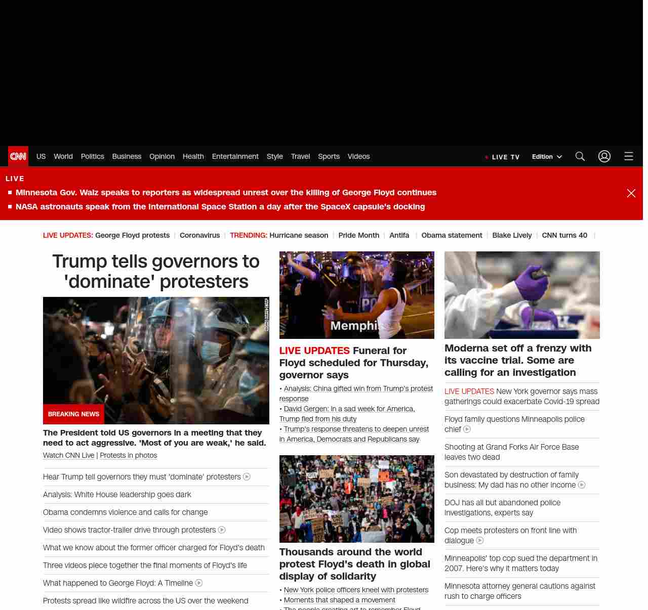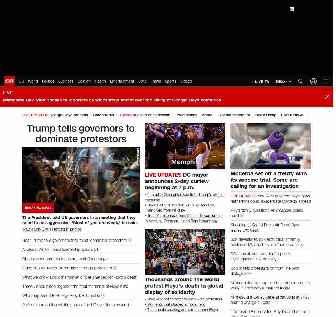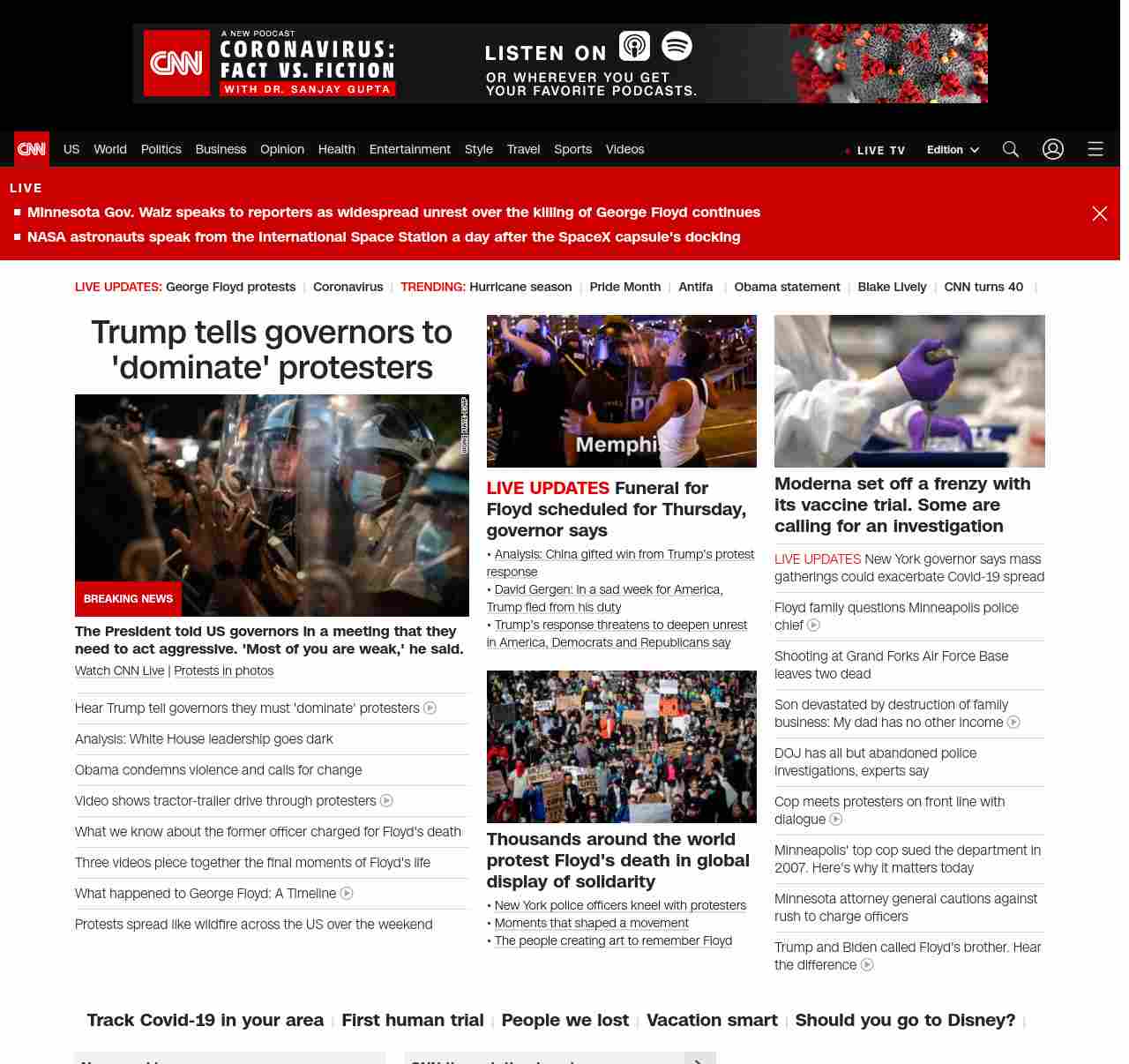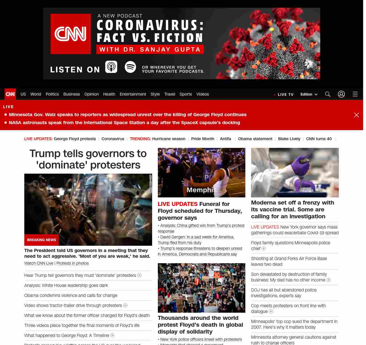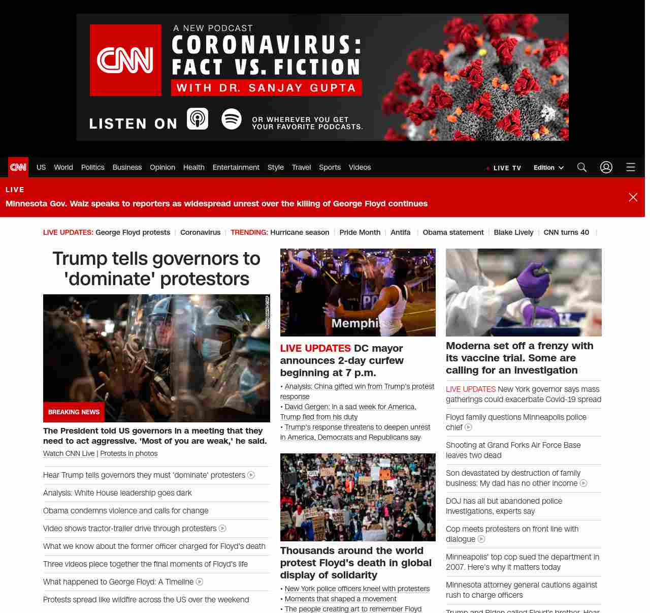 CNN1: FOXVCNN=|Trump tells governors to ‘dominate’ protestors| ((lubuntu at wor3))