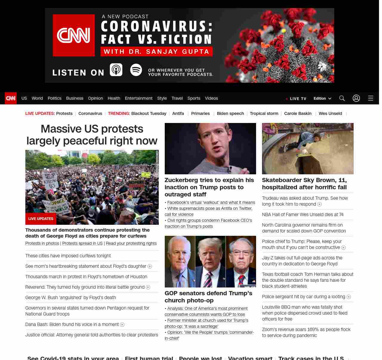 || screaming-banner-text banner-text-size–char-47″ data-analytics=”_list-hierarchical-xs_hyperlink_”> Massive US protests largely peaceful right now ||”},”chartbeat”:{“sections”:””},”branding_content_page”:”default”,”branding_content_zone”:[“default”],”branding_content_container”:[“default”,”cnn-money-markets”,”space-and-science”,”cnn-heroes-hp”],”branding_content_card”:[“”]} , edition: “domestic” , sourceId: ”