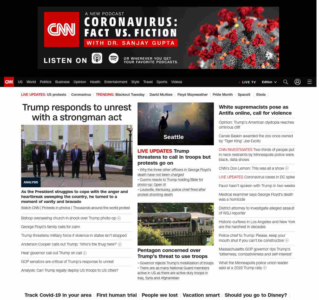 CNN1: FOXVCNN=|Trump responds to protests with a strongman act| ((lubuntu at wor3))